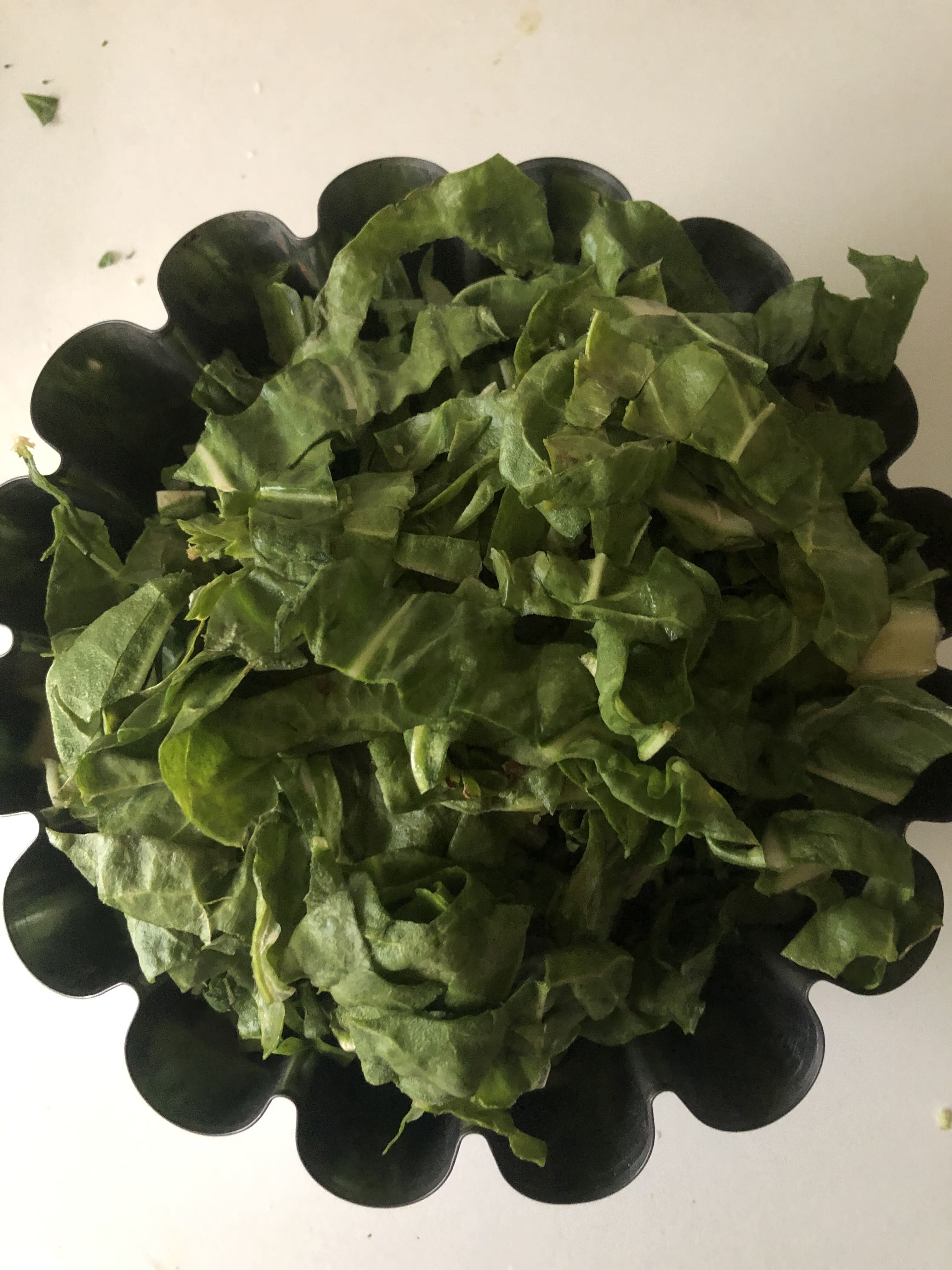 Mientras tanto, quita el tallo a las acelgas y lava y pica las hojas en trozos pequeños. Reserva los tallos para otra receta, bien una crema u otras ideas que iré compartiendo.