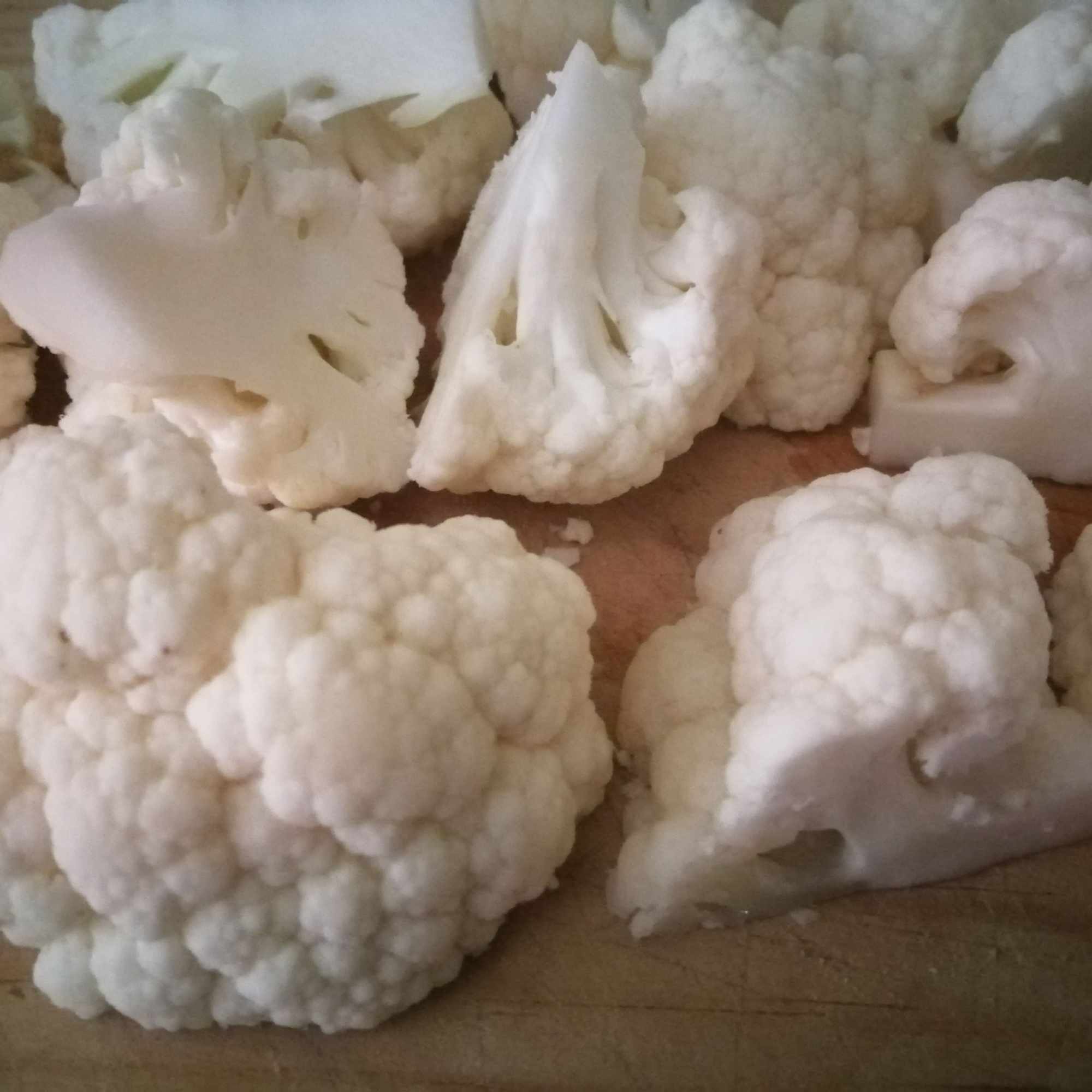 Lava la coliflor, seca con papel de cocina y separa los ramilletes. Córtalos a la mitad o en 4 trozos, dependiendo del tamaño.