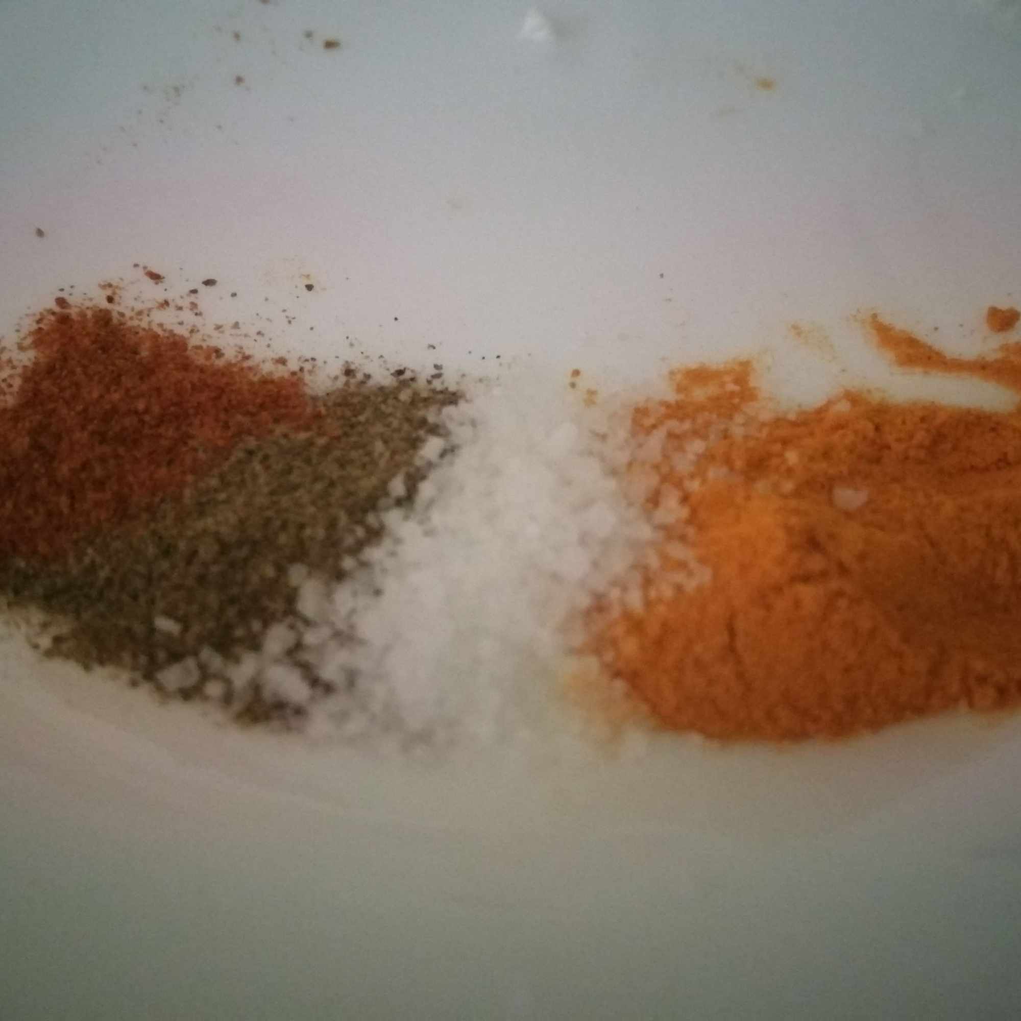 Prepara el aliño con el aceite y las especias. Pon la coliflor en una bandeja de horno o en una fuente. Añade el aliño y mezcla bien, untando todas los trozos. Macera unos 10 minutos.
