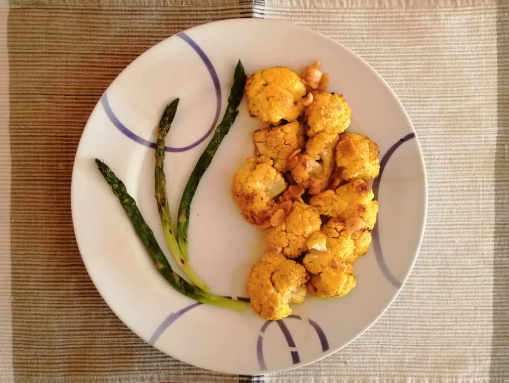 Desde que le he dado una oportunidad a la coliflor (ya de mayor), confieso que me «tiene un poco en el bote». Hoy traigo una receta muy fácil y muy versátil: coliflor asada al curry. Es tan simple como añadir especias, macerar y asar. Lista para servir. Puedes aliñarla como más te guste y tiene un toque crujiente que nada tiene que ver con aquella coliflor «blandurria» de la infancia de la que ya hemos hablado.