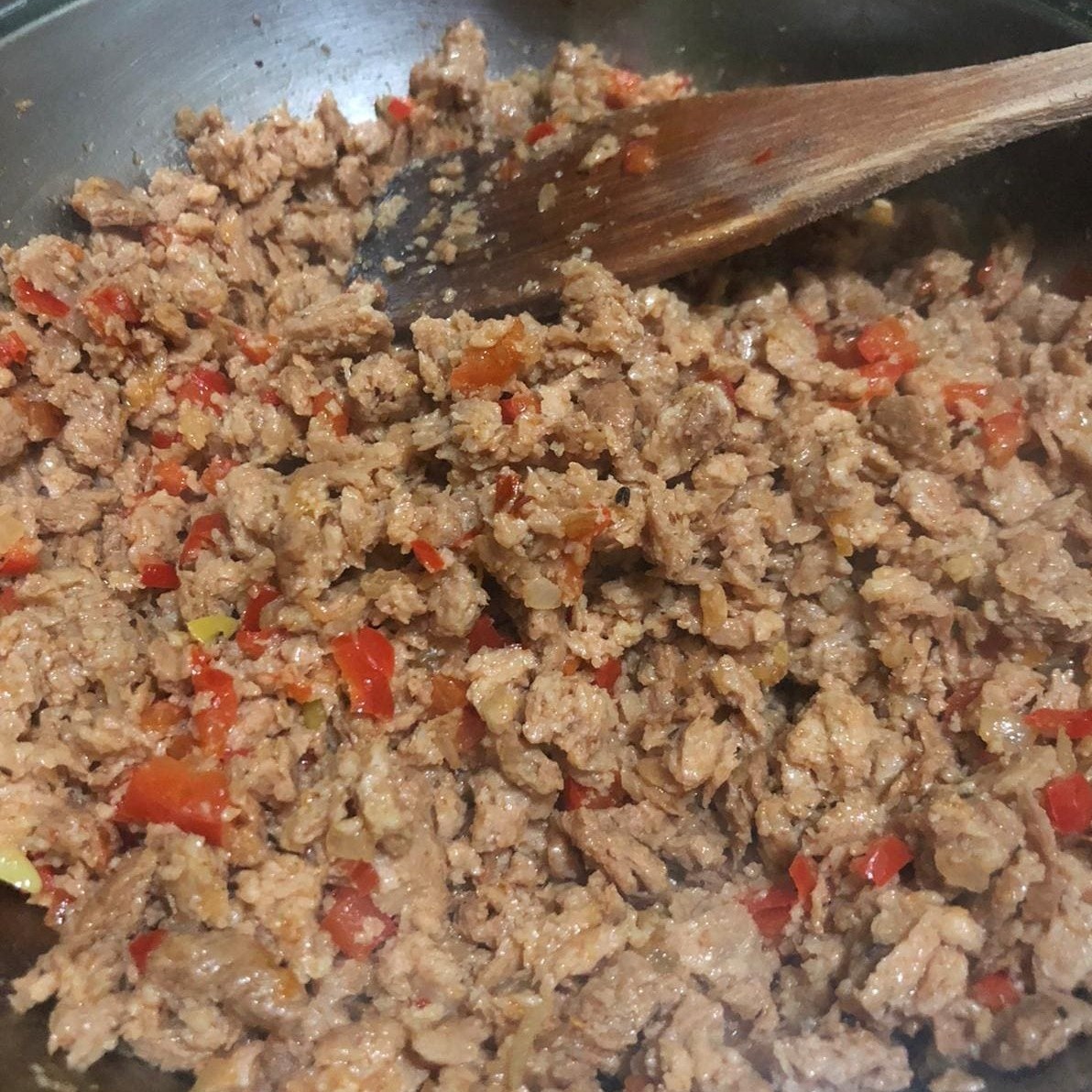 Puedes utilizar carne picada si lo prefieres, pero tendrás que ajustar la cantidad. La soja dobla su tamaño una vez hidratada.