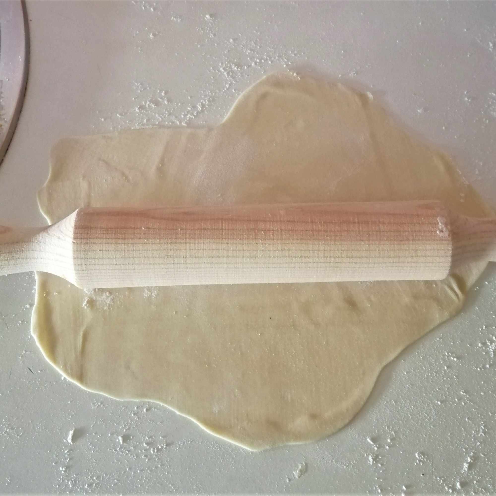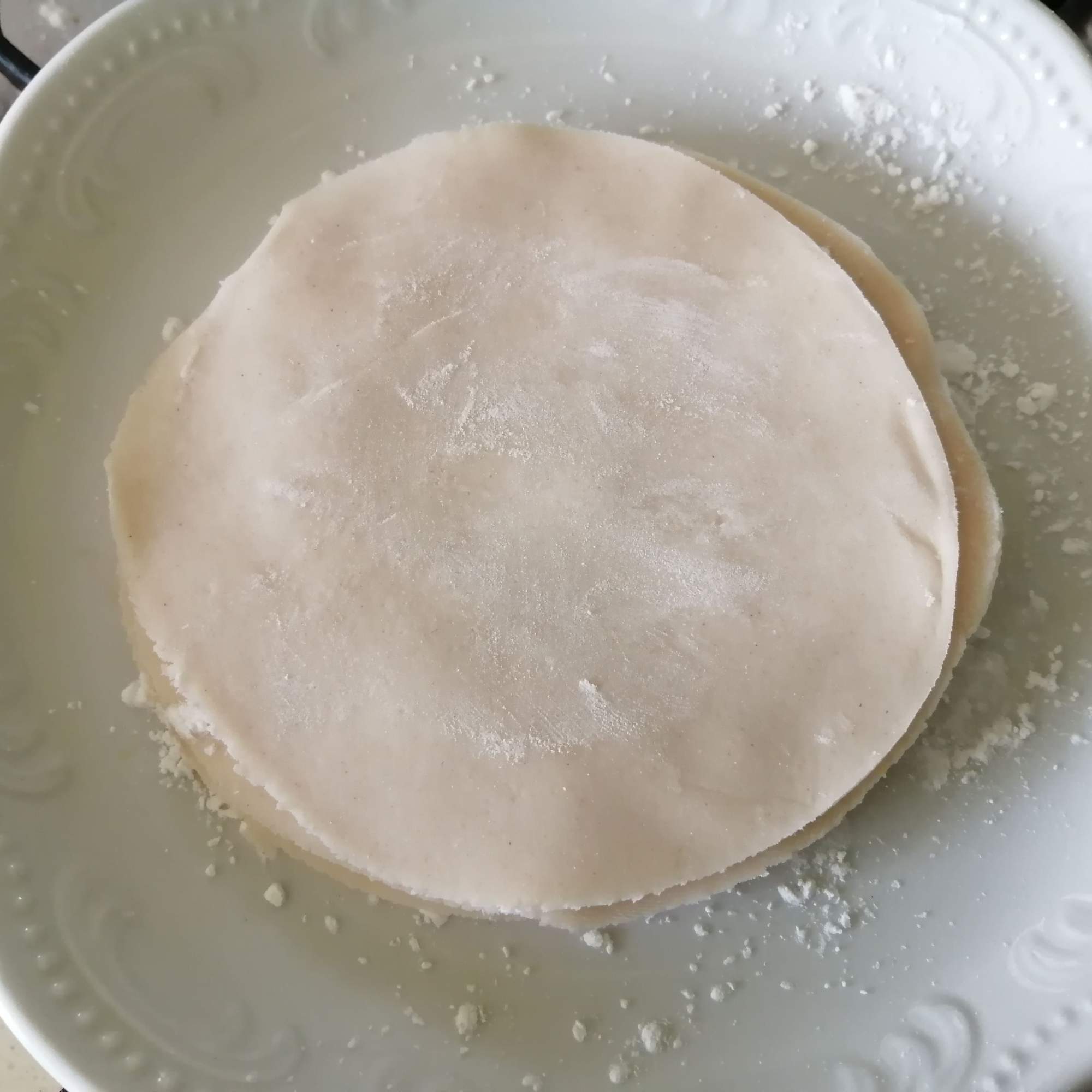 Mientras se enfría el relleno vamos a preparar las empanadillas. Coge la masa y córtala en 4 trozos, te será más fácil trabajarla. Si tienes una máquina para hacer pasta, puedes utilizarla. En caso contrario, ármate de paciencia y estira la masa con un rodillo. Con ayuda de un molde (o un vaso grande en su defecto), corta la masa en círculos. Espolvorea con harina (o maicena) para que no se peguen y déjalos sobre un plato.