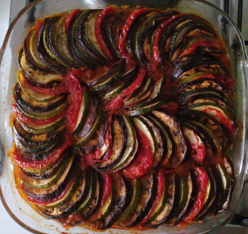 El Ratatuille es un plato típico de la cocina francesa elaborado a base de hortalizas, principalmente calabacín, berenjena y tomate. Su característica principal es la presentación, ya que ofrece un festival de color a la vista. Por otra parte, el tiempo que se invierte en prepararla, ya que según la receta original cada ingrediente se cocina por separado para mantener los sabores.