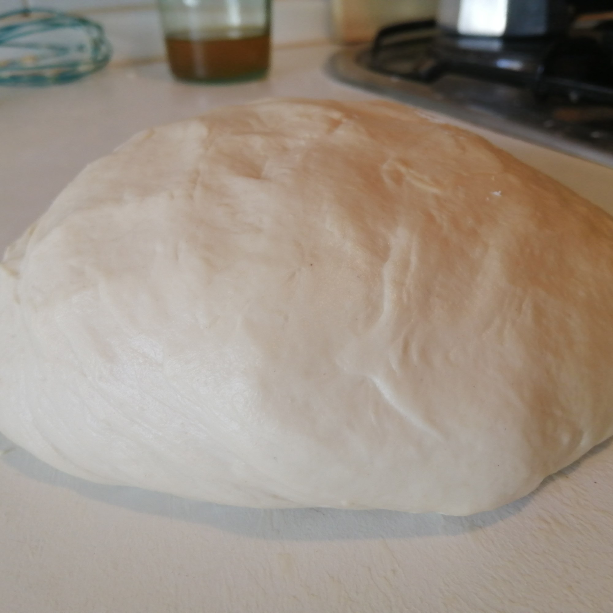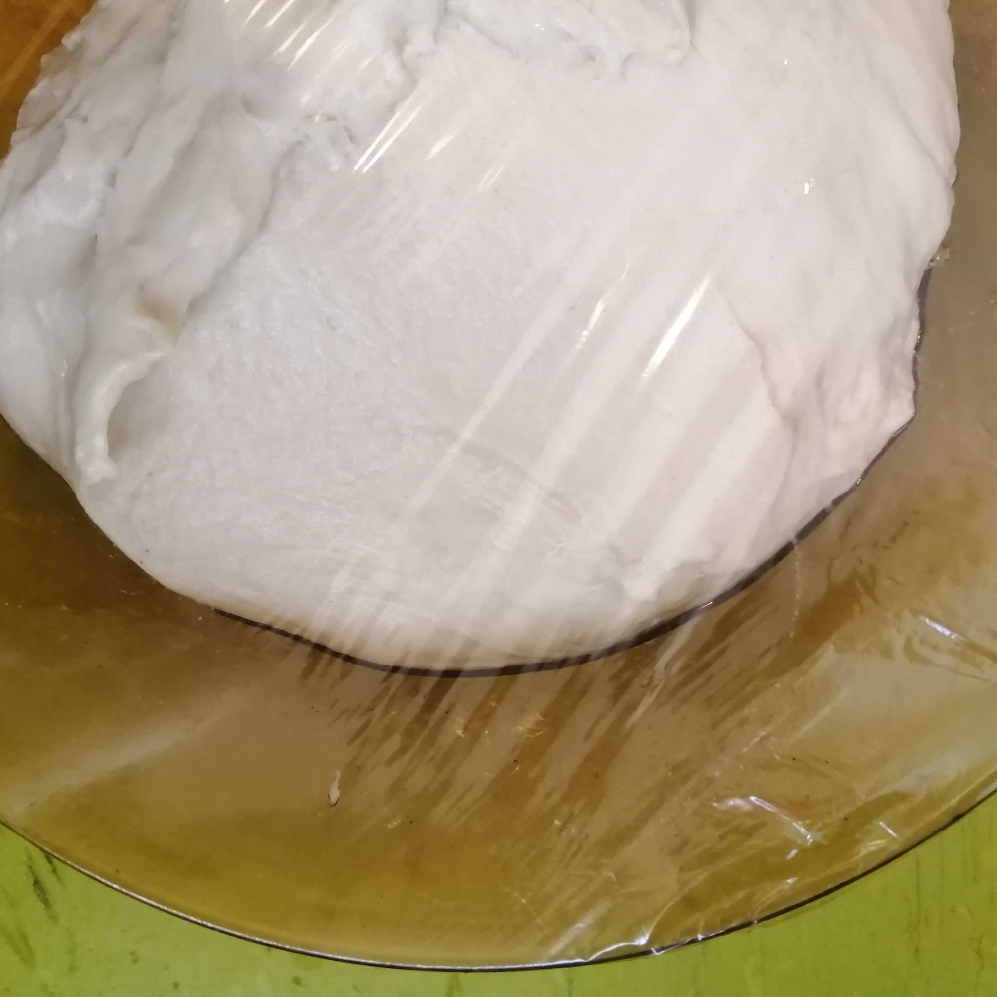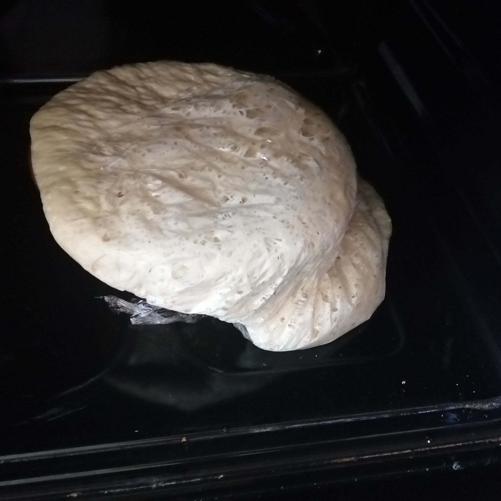 Cuando no puedas continuar trabajando la masa, pasa al mármol previamente espolvoreado con un poco de harina y amasa hasta conseguir una textura elástica. Si se pega a las manos, utiliza un poco de aceite. Unta un bol con un poco de aceite y deja reposar la masa, cubierta con papel film, durante 2 horas o hasta que doble el volumen (en verano, en la Extremadura donde vivo, puede llegar a desbordarse… basada en hechos reales…) 🙂