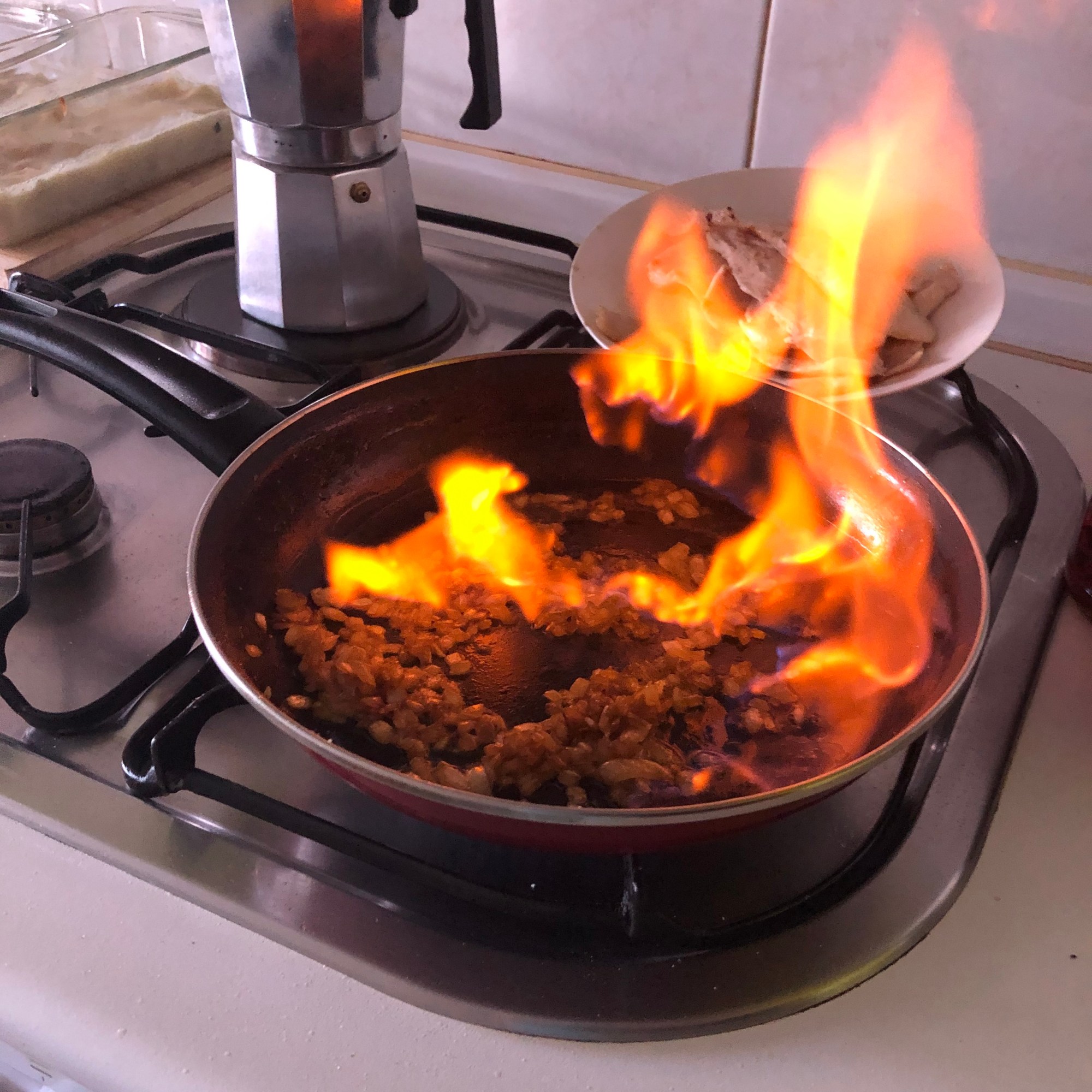 Puede que flambear te cause un poquito de respeto, así que te recomiendo usar un palillo o un pincho moruno para que tengas una mayor distancia de seguridad. Yo lo hago así 🙂