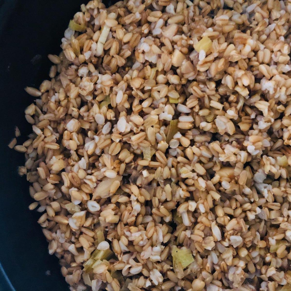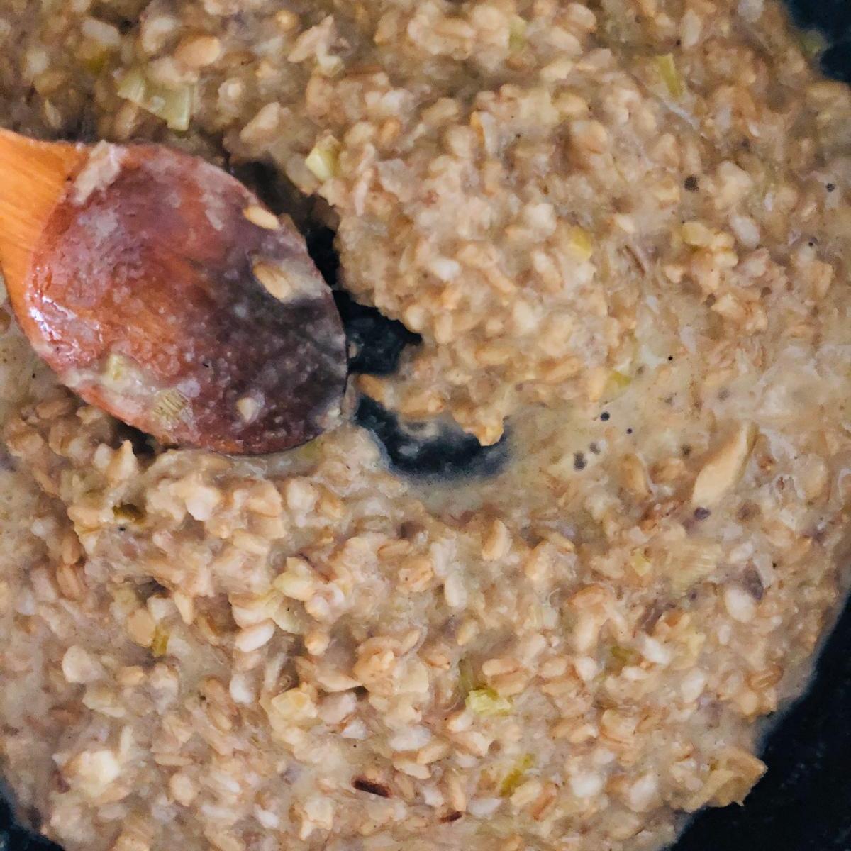 Antes de nada, esta receta no debería llamarse «risotto», ya que no está elaborada con arroz, sino con avena. Avena en grano, para ser exacta. Pero es que es tan cremosa y tiene un sabor tan intenso, que podría perfectamente ser un risotto.