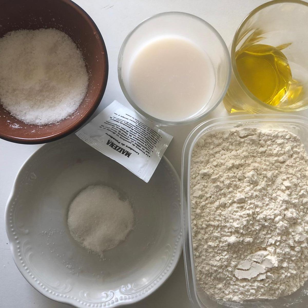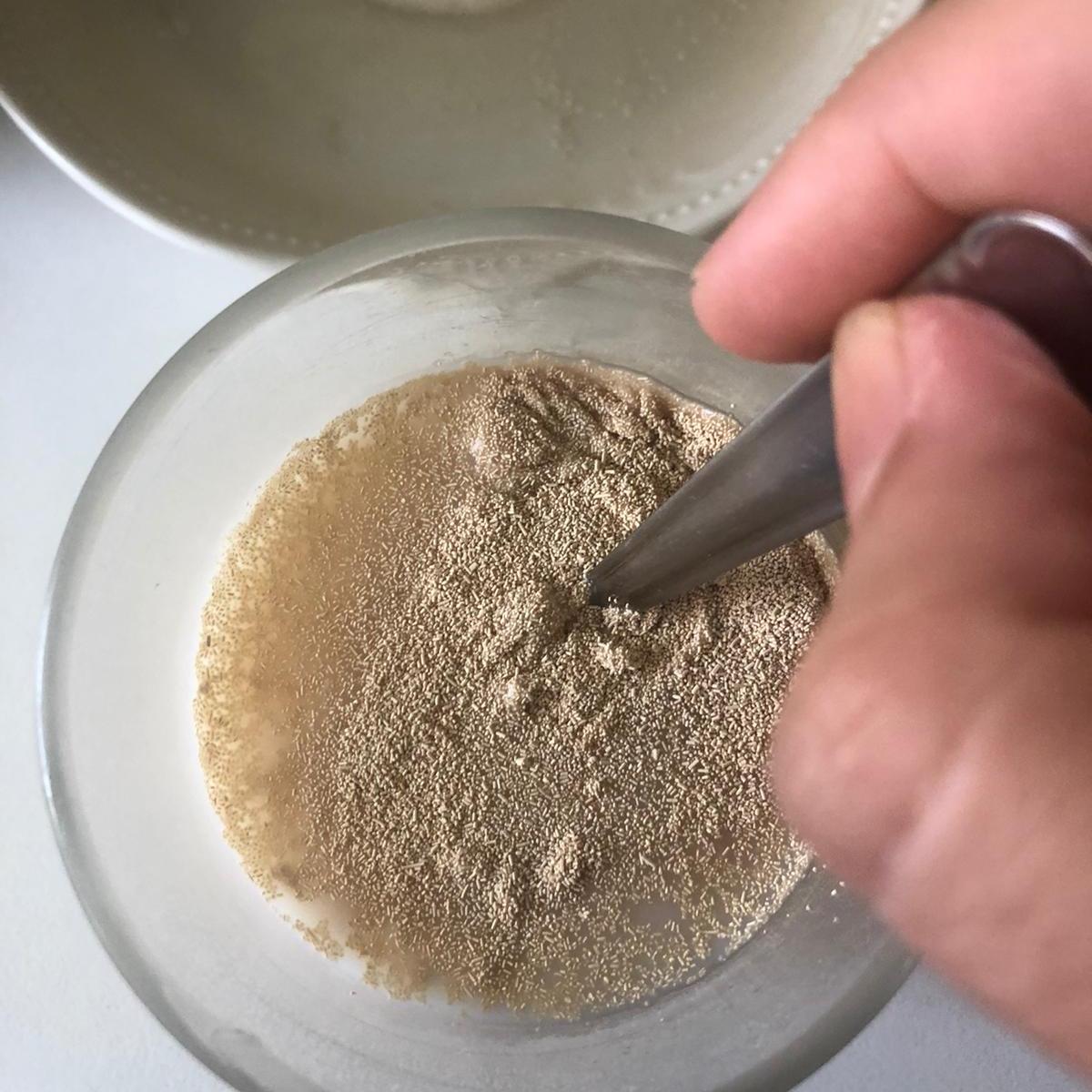 Activa la levadura. Calienta la leche un poco (tiene que estar tibia), agrega la levadura y el azúcar (para acelerar el proceso). Remueve hasta que se disuelva y deja reposar 10-15 minutos. Verás cómo empiezan a salir burbujitas: