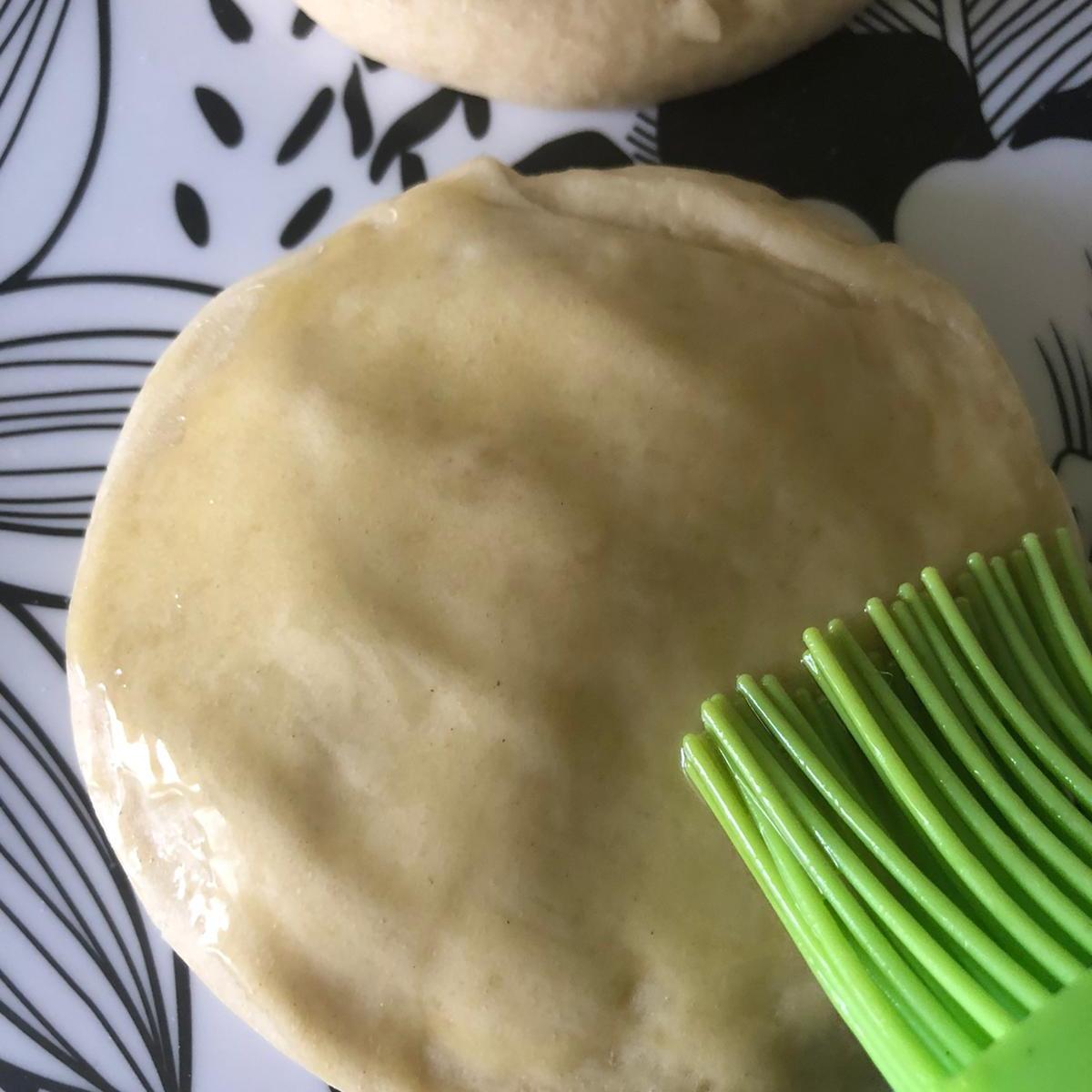 Pasado este tiempo, la masa habrá subido un poquito. Aplasta suavemente con las manos para eliminar el aire. Prepara una mezcla de aceite, leche y sirope de agave y barniza los panecillos (para darles un color dorado). Espolvorea con semillas de sésamo.