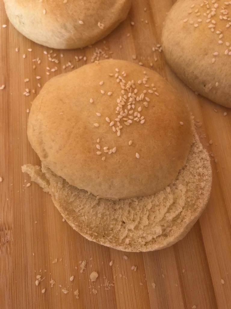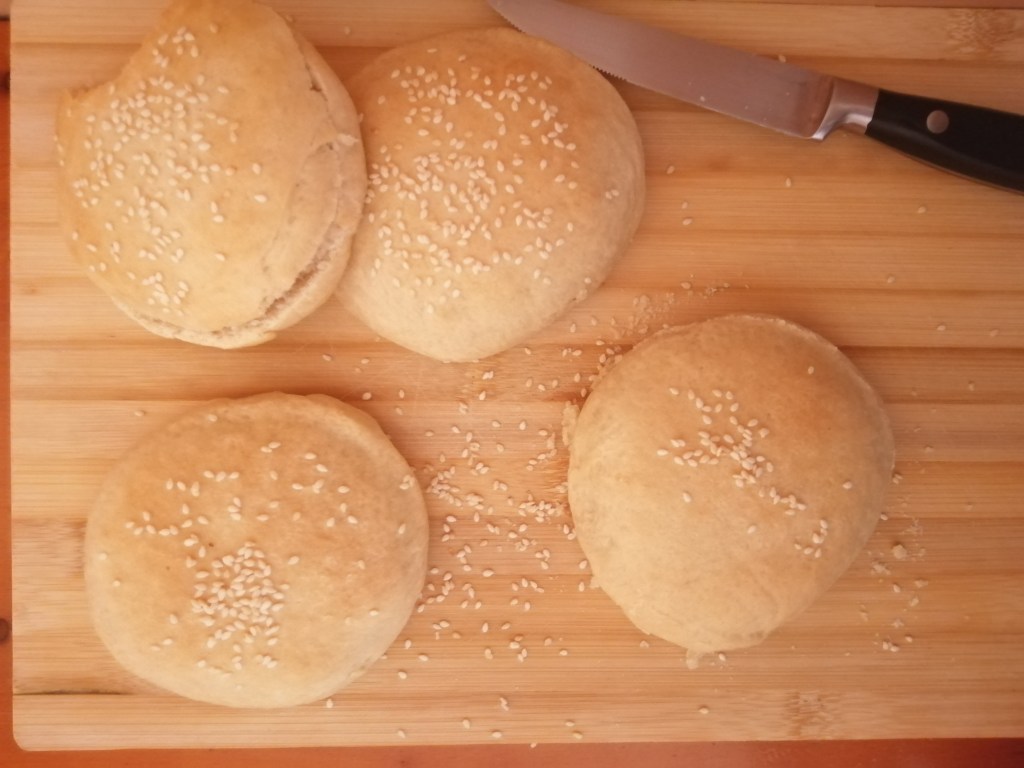 Este fin de semana me sentía inspirada y me dediqué a hacer hamburguesas de lentejas (por cierto, compartiré la receta el viernes). Así que decidí hacer también el pan. Es una receta sin huevo y muy fácil. Necesitas tiempo, como suele ser lo normal con los panes y las masas. Pero merece la pena esperar un poquito.