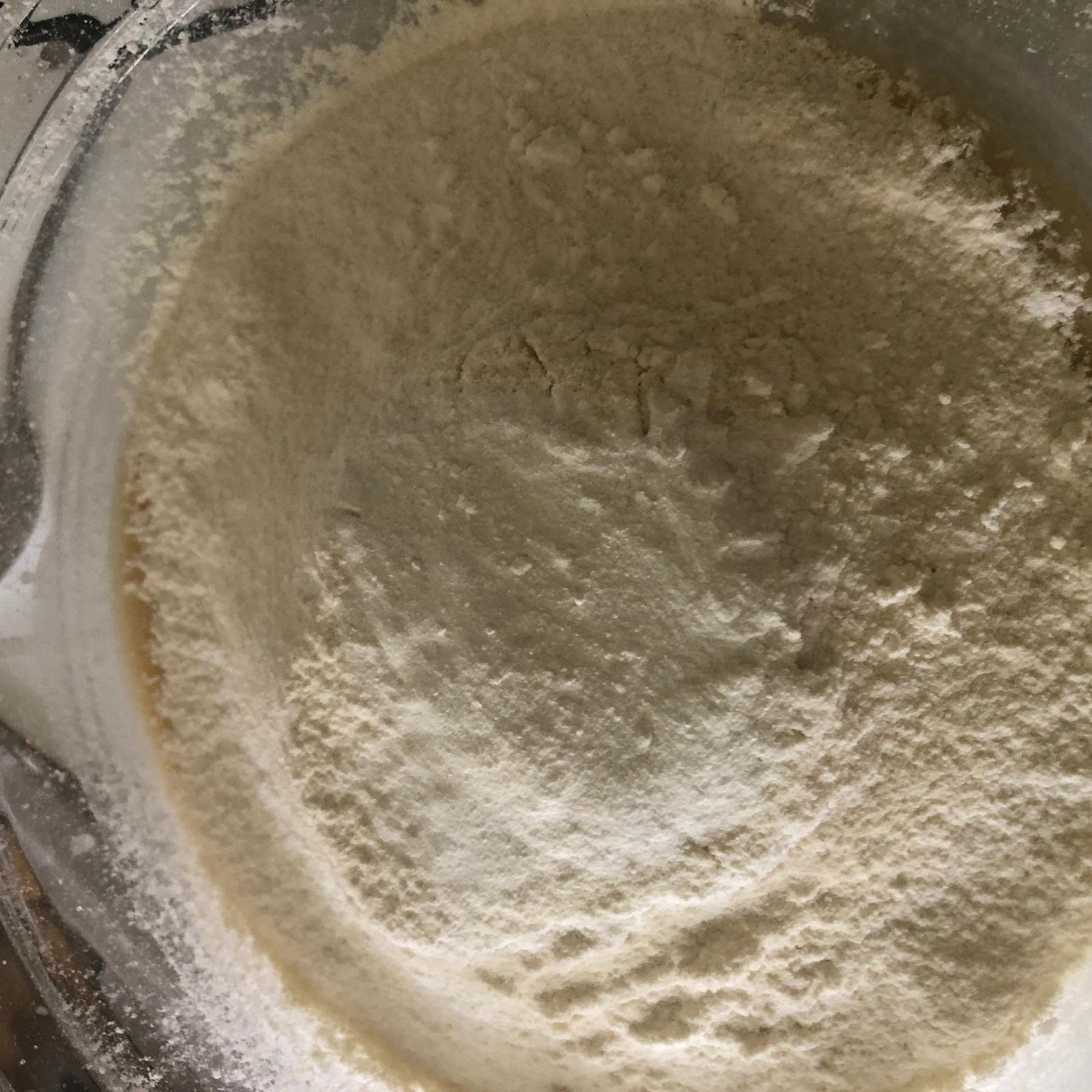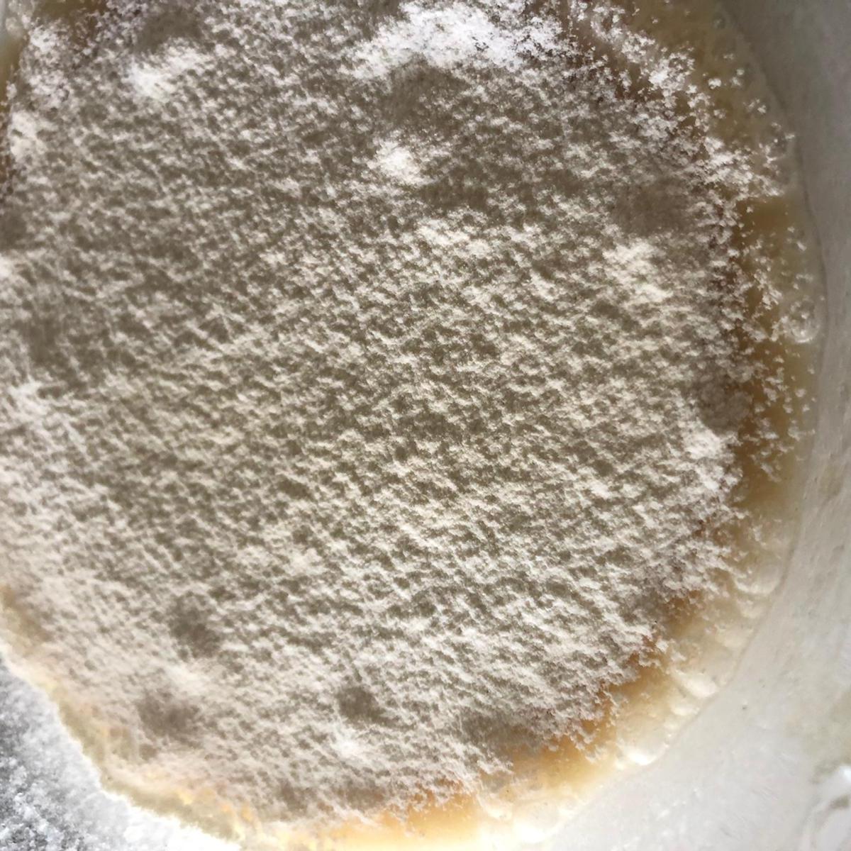 Tamiza la harina y agrega la levadura. Mezcla. Añade los ingredientes secos a los húmedos y remueve bien con una espátula o las varillas. No utilices la batidora, porque queremos una masa aireada. Deja reposar la masa en la nevera, cubierta con papel film, durante 30 minutos.