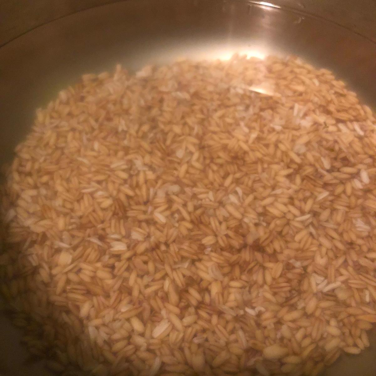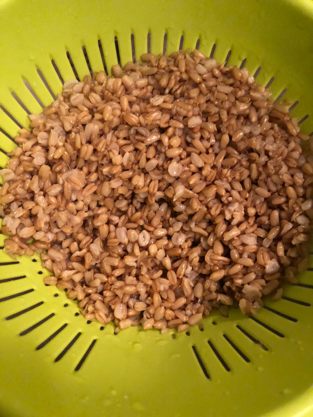 Escurre el agua y aclara. Pon la avena en una cazuela u olla a presión y cuece hasta que esté tierna (en la olla tarda unos 40 minutos; en la cazuela normal alrededor de 1 hora).
