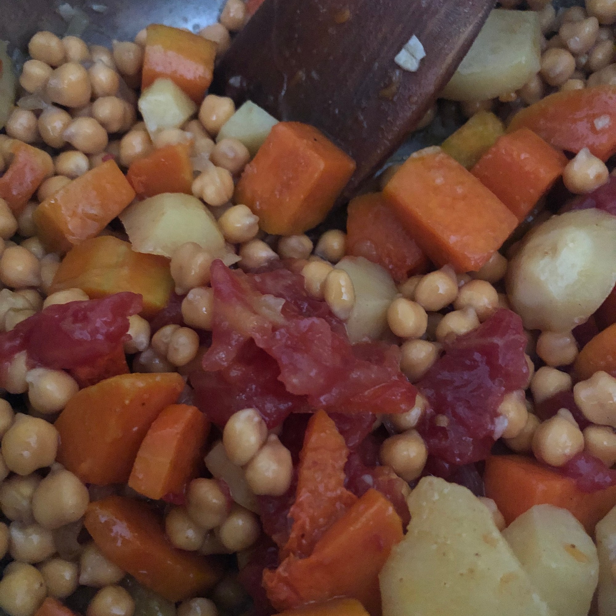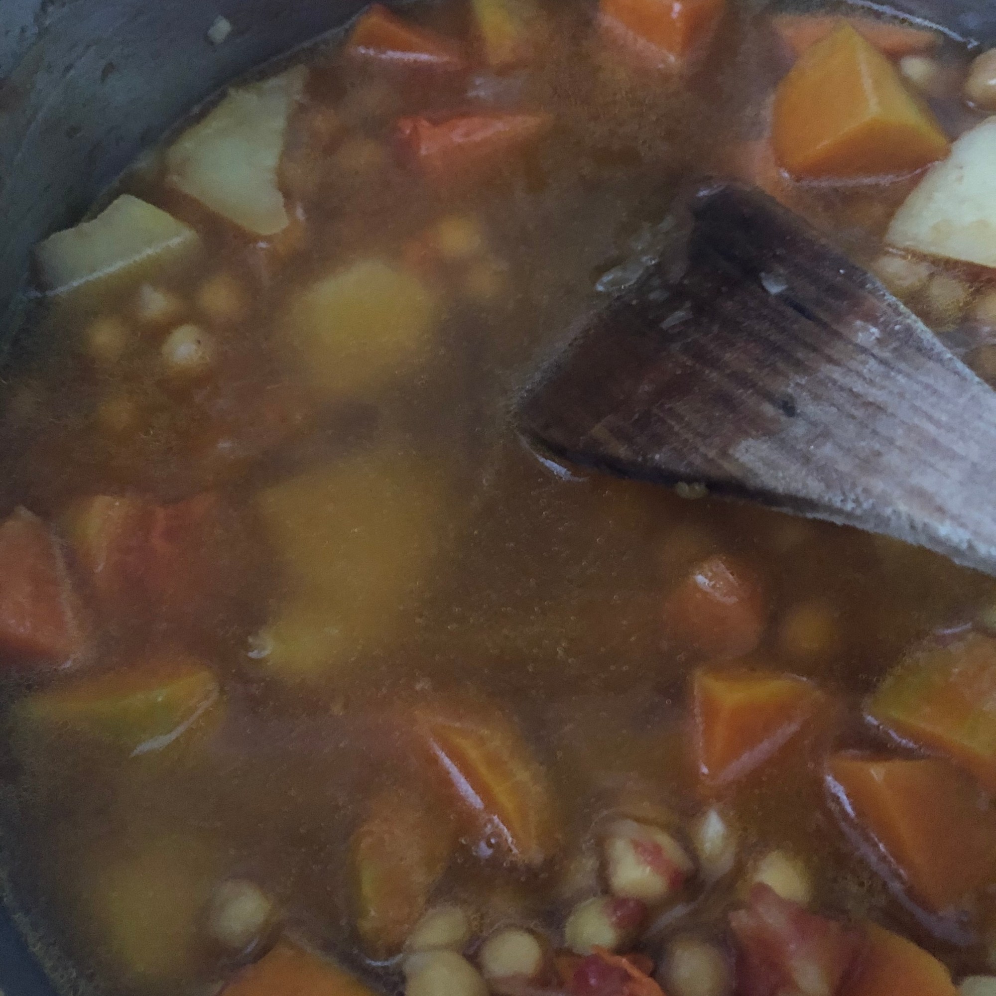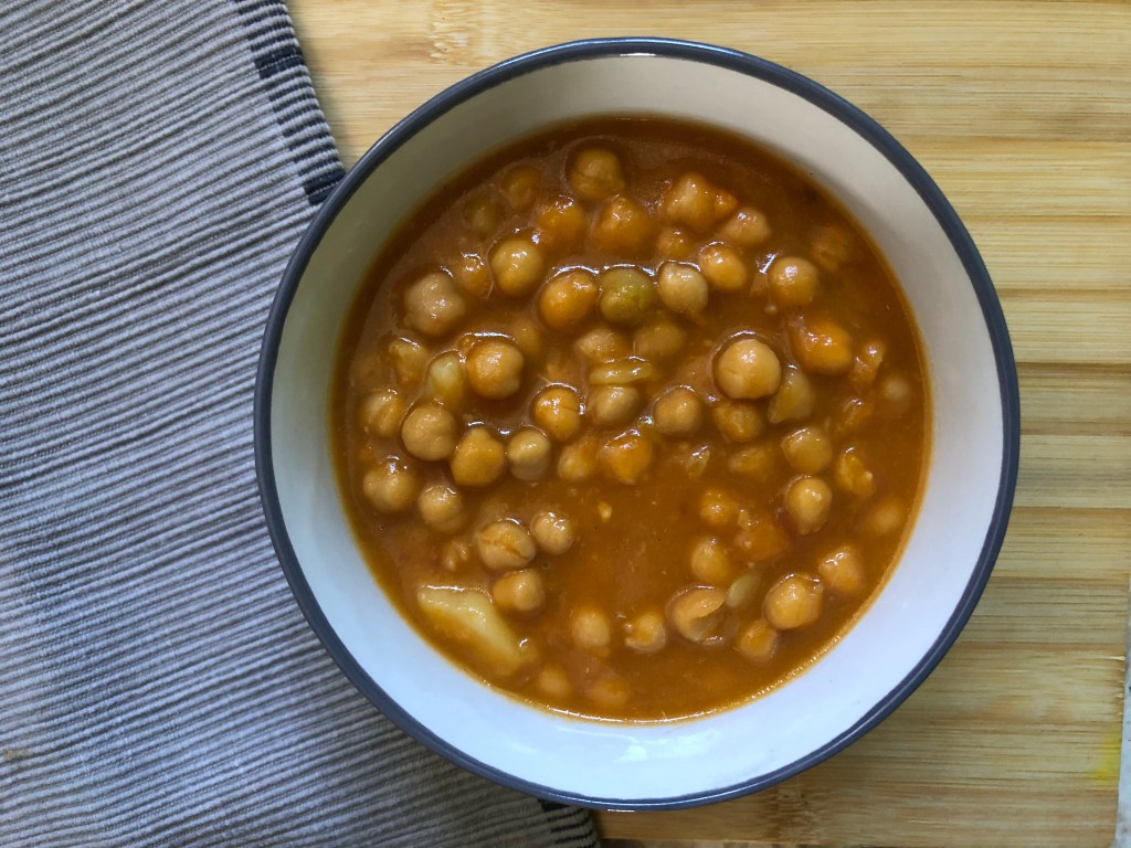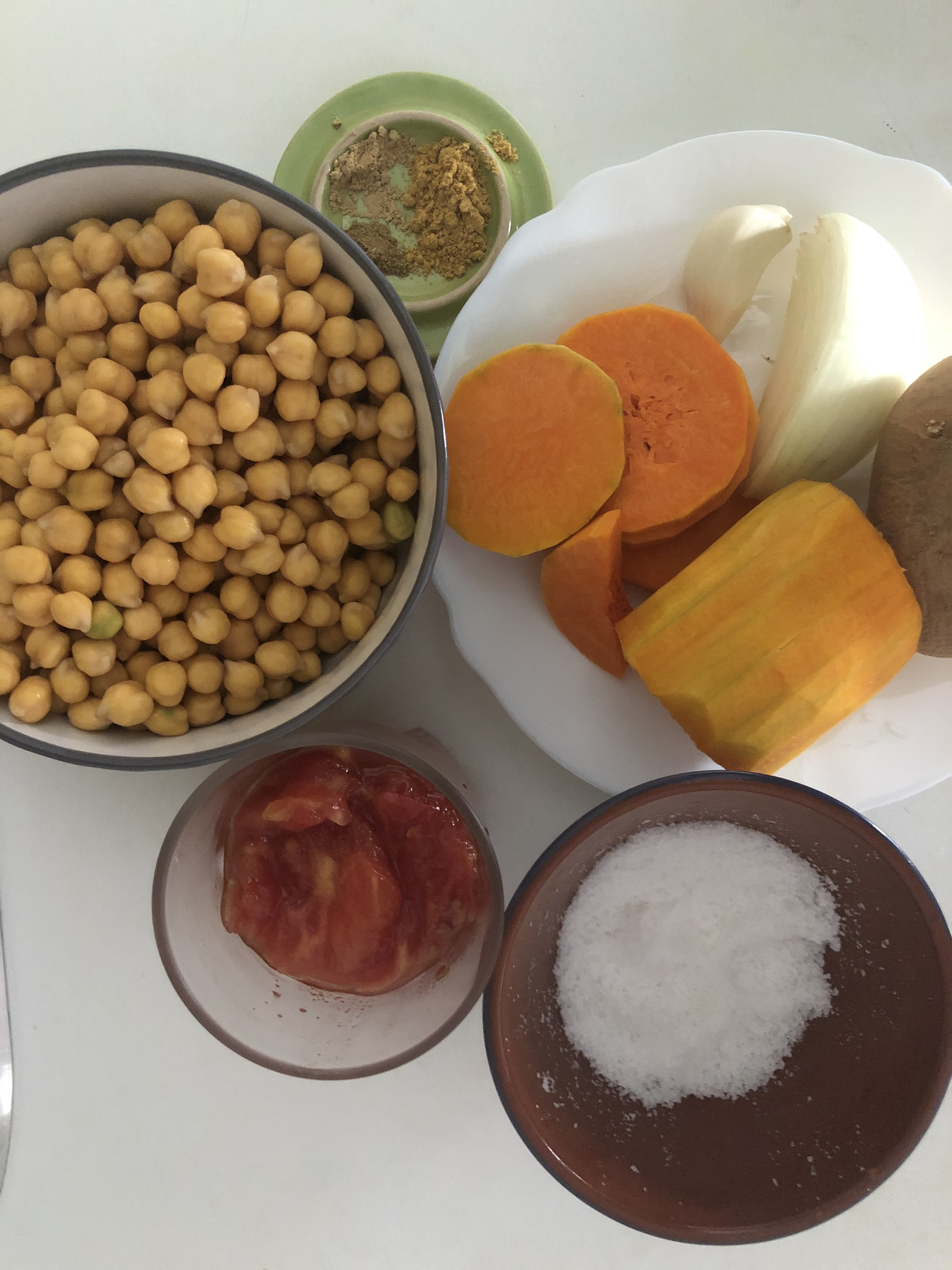 Cómo me gusta el otoño, los colores del campo, los frutos de temporada y los platos de cuchara. Hoy os traigo una receta que mezcla ingredientes que me gustan mucho: primero, los garbanzos, que son mi legumbre preferida; segundo, la calabaza, fruto por excelencia de esta época del año y, tercero, las especias, que dan a este plato un toque que recuerda a la cocina india.