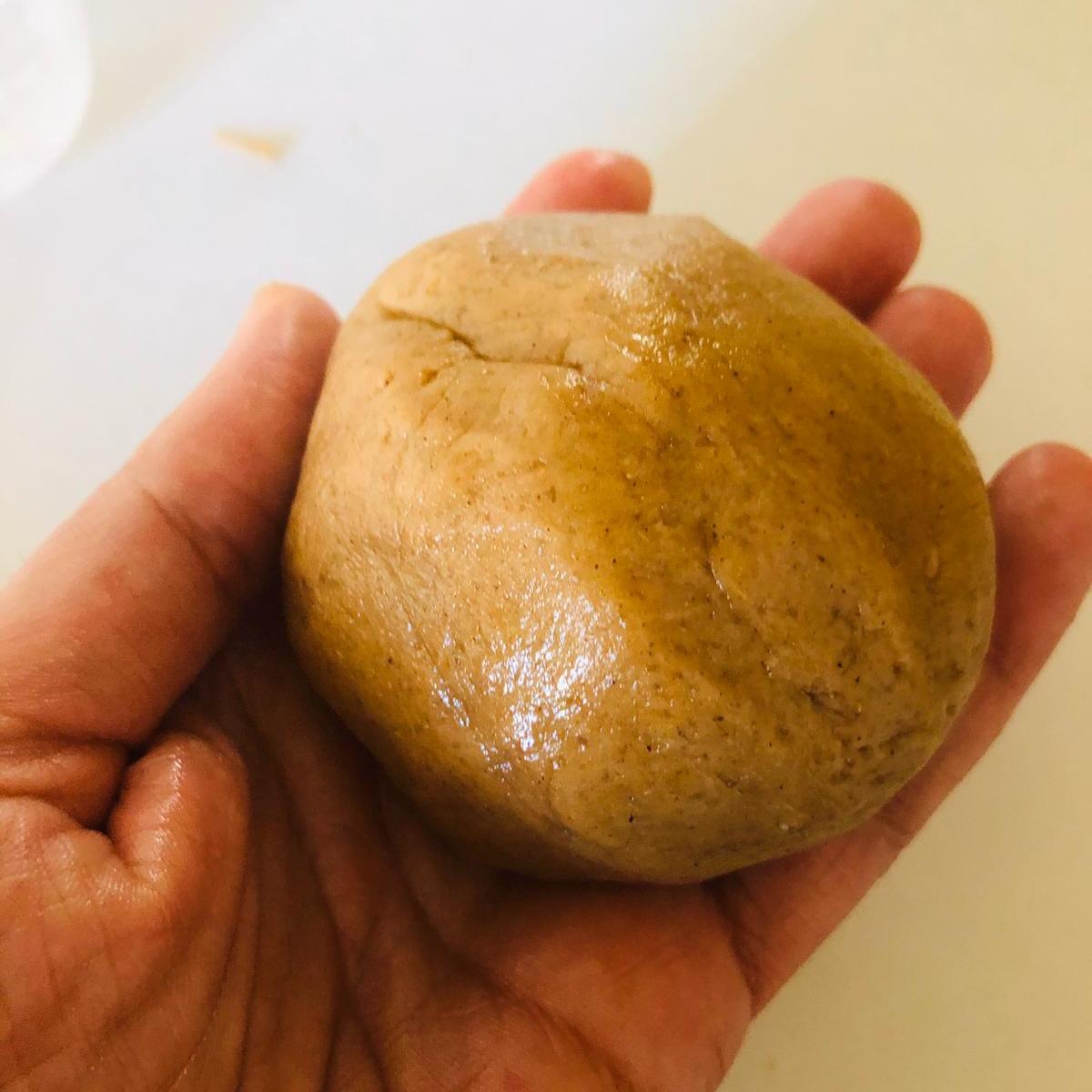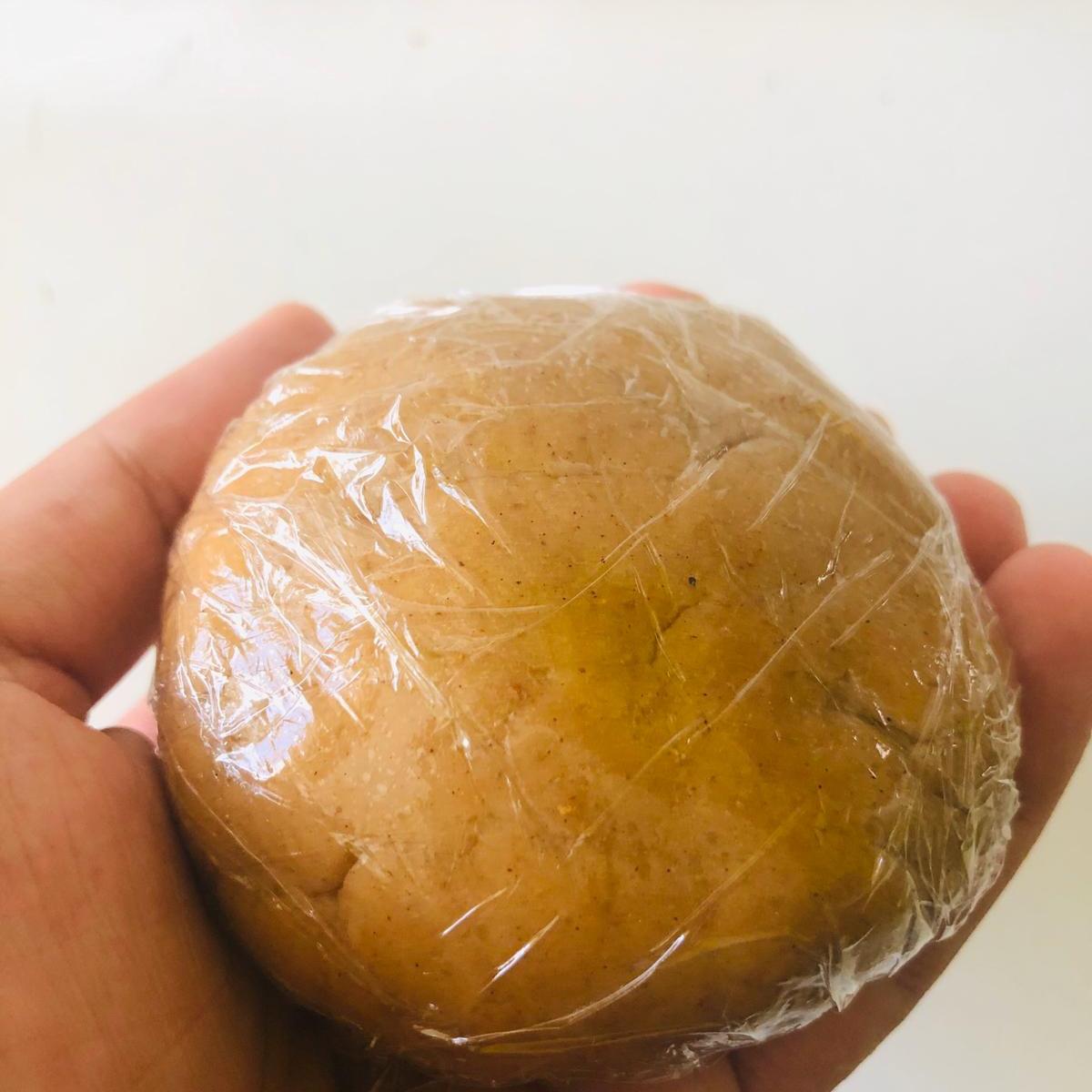 Haz una bola (tiene textura de plastilina) y déjala reposar en el frigorífico durante 30 minutos, envuelta en papel film.