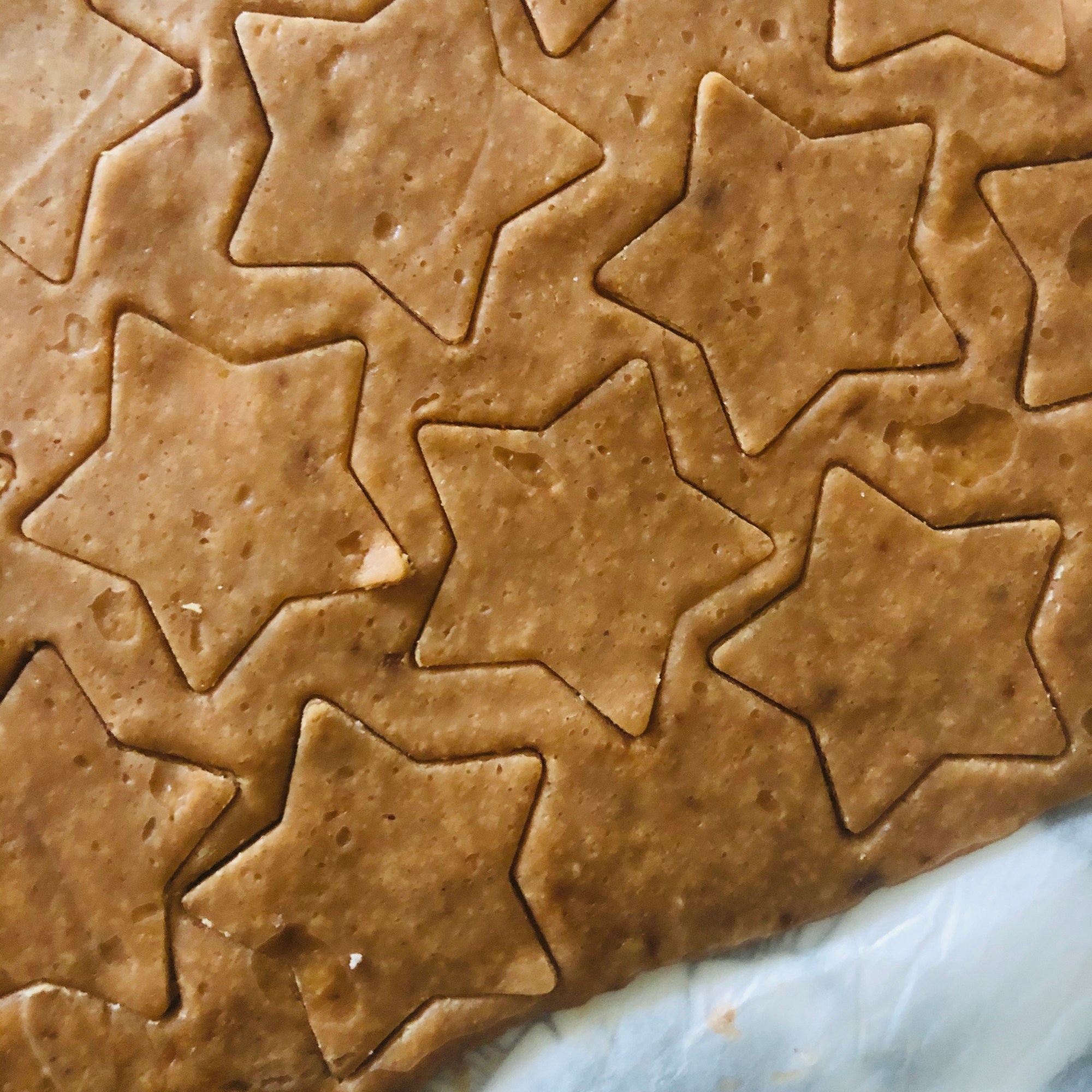 Me hubiera encantado tener un molde de gingerbread man, el hombre de jengibre tan típico de Reino Unido, para darle el toque especial definitivo. Pero bueno, yo tengo uno de estrellitas, que es también muy propio para estas fechas.