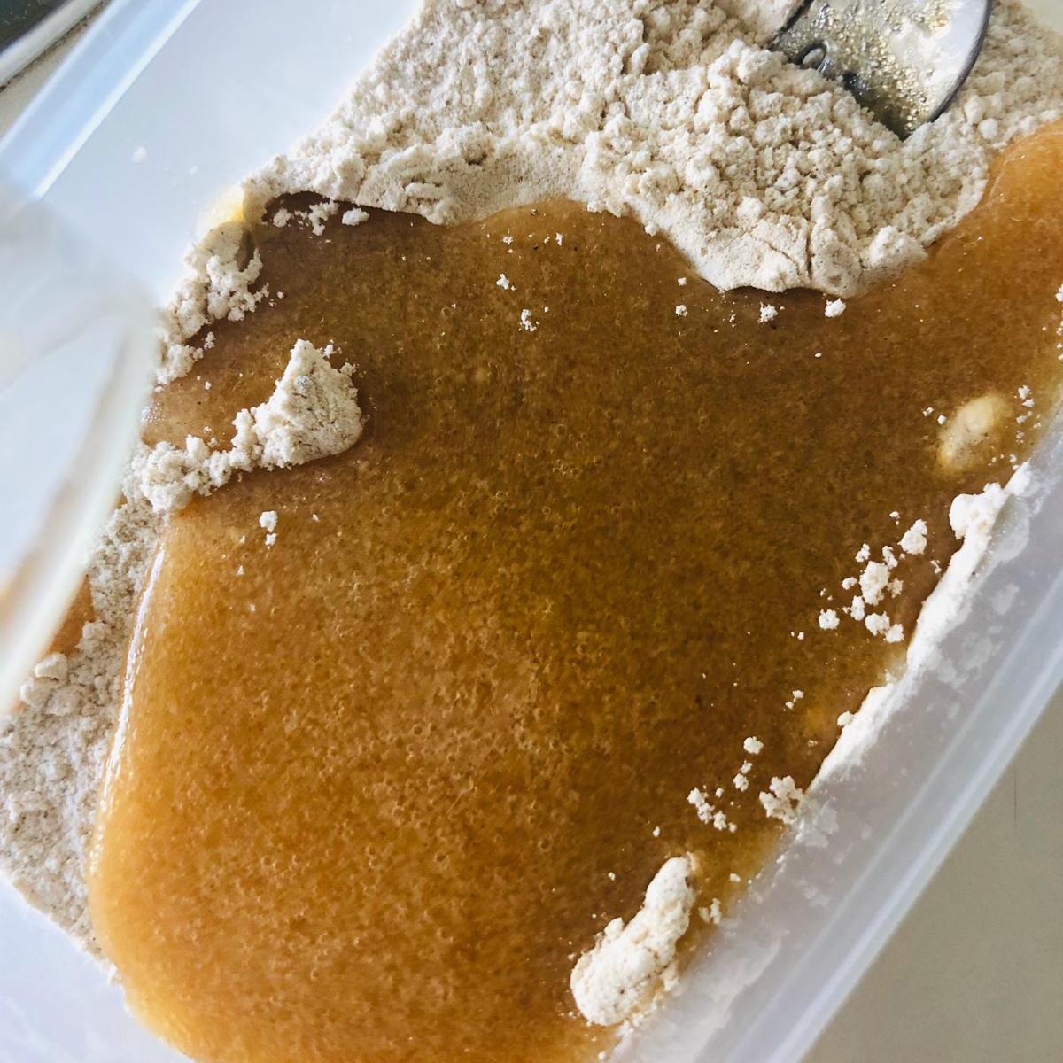 Por otra parte, mezcla los ingredientes húmedos (leche, zumo de limón y aceite) y agrega el azúcar. Añade esta mezcla a los ingredientes secos.
