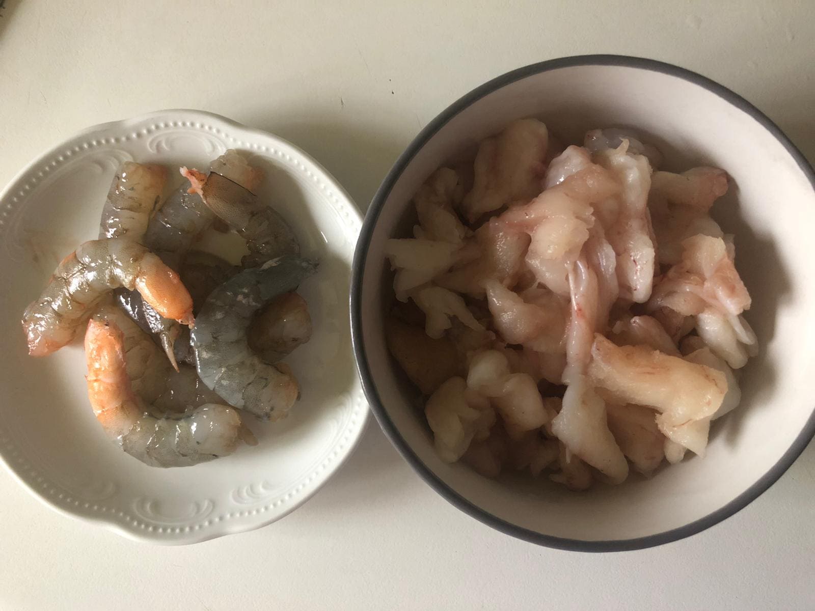 Lo primero que haremos será el fumet. Para ello utilizaremos los huesos del rape y las cáscaras y cabezas de langostinos (aquí te dejo un vídeo muy chulo sobre cómo pelar langostinos super fácil).