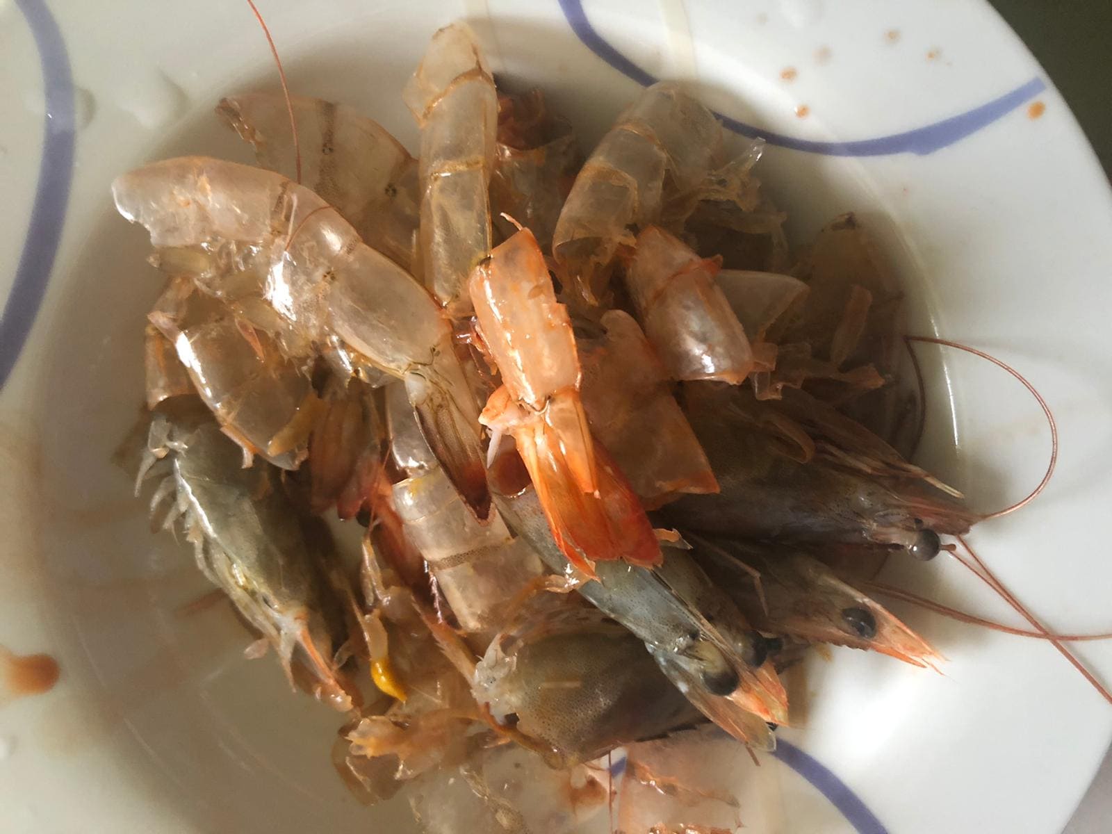 Hace unos días, haciendo limpieza de congelador, encontré unas cabezas de rape que llevaban ya bastante tiempo guardadas. Había comprado también una caja de langostinos que se me antojaron y pensé que sería buena idea mezclar ambos y ver qué pasaba. Después descubrí que no había inventado nada, ya que había muchísimas recetas en internet… Pero esta es la mía.