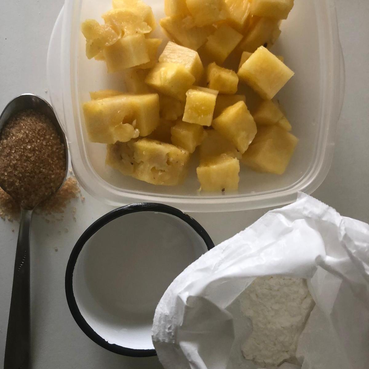 - 250 gr de piña (2 rodajas de un dedo de grosor)