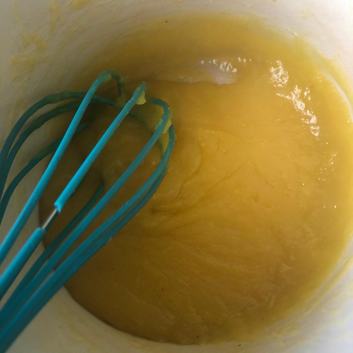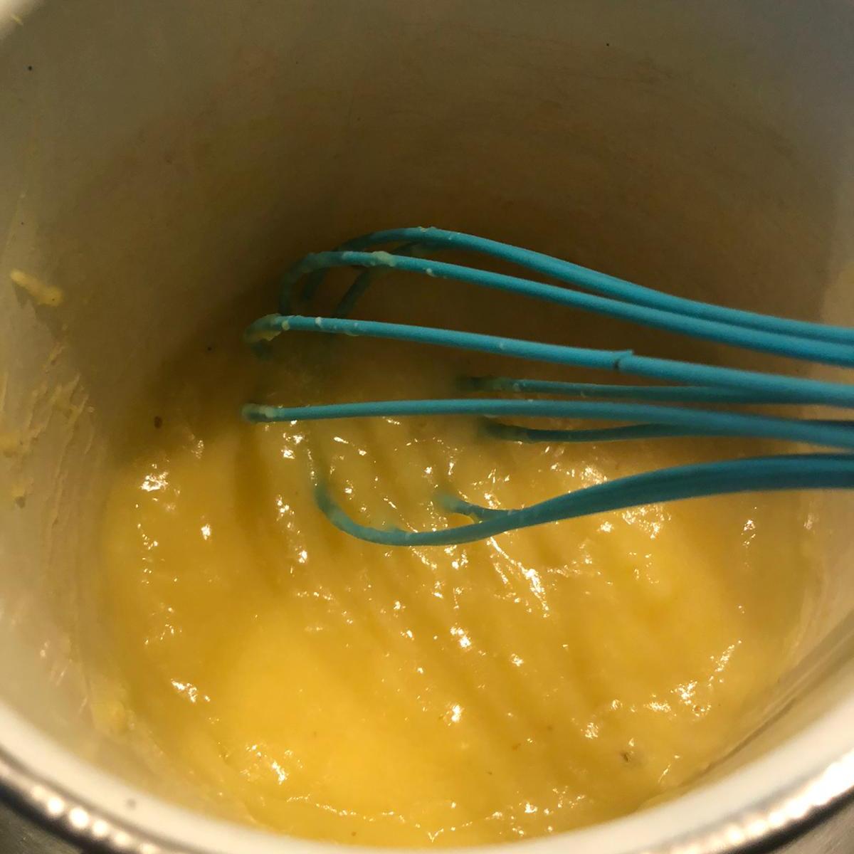 Disuelve la maicena en la leche. Cuando la piña comience a hervir, añade la leche y remueve con unas varillas hasta que empiece a espesar. Cocina unos 3 minutos más y retira. Deja enfriar.