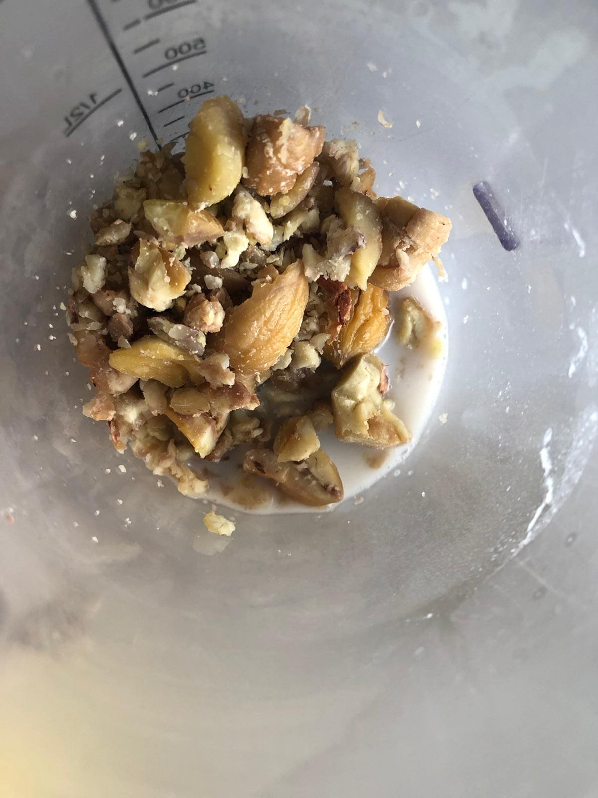 Tritura bien las castañas, hasta lograr una crema fina y añade a la leche.