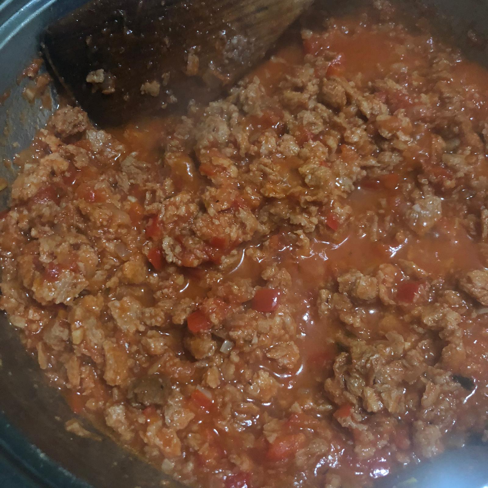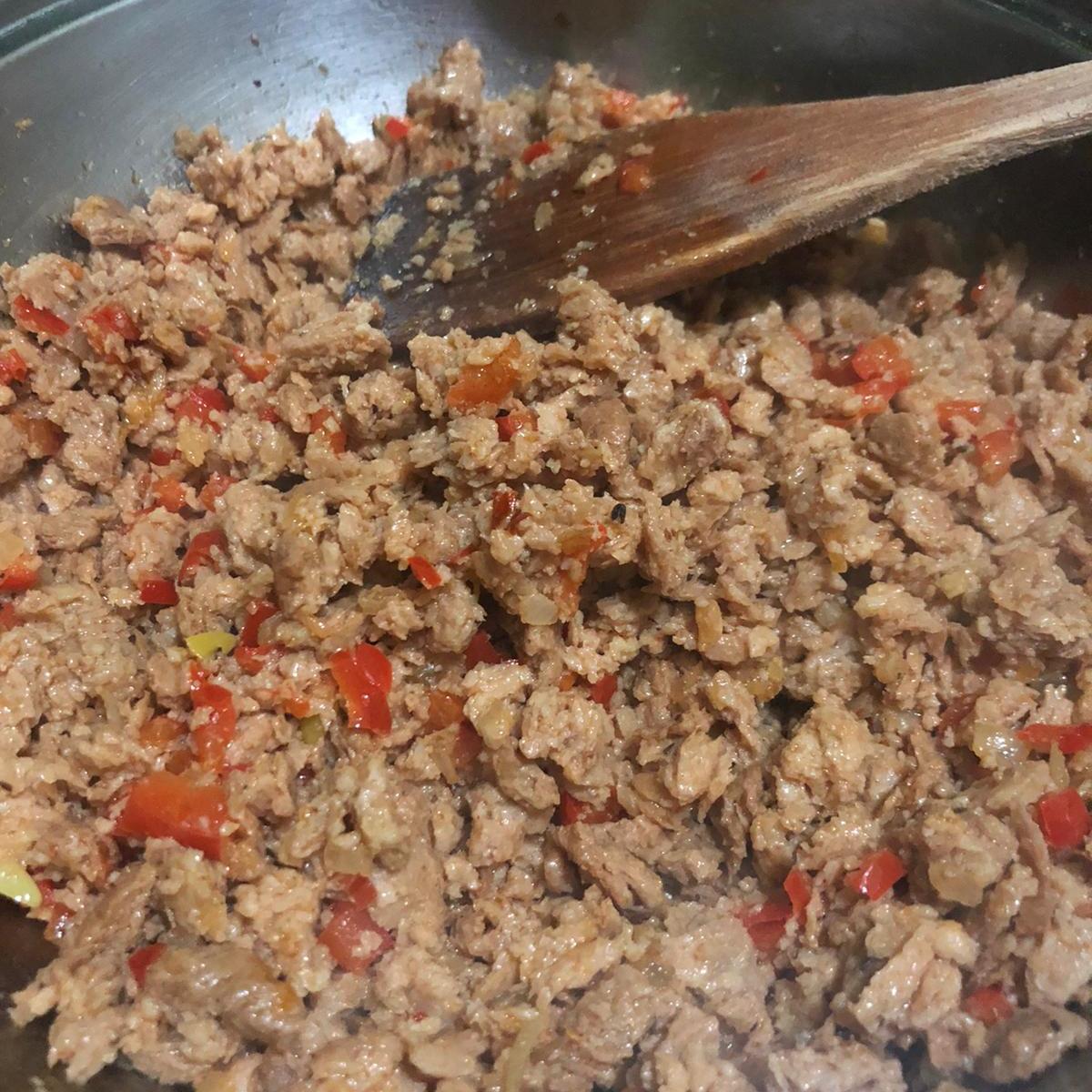 Este plato se hace con carne picada y frijoles (alubias rojas), pero en este caso sustituiremos la carne por soja texturizada. Tiene un toque picante típico mexicano que podréis regular a vuestro gusto (ya que nuestros estómagos no están adaptados a la comida mexicana jejeje). La receta que os propongo no es demasiado picante porque, aunque me gusta mucho, considero que en exceso no nos permite disfrutar de los sabores. Pero para gustos, los colores.
