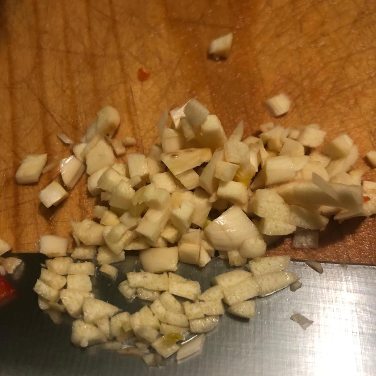 Pica el ajo y la guindilla finamente y añade a la sartén. Agrega el comino y cocina unos minutos para que se integren los sabores. Incorpora el pimentón y cocina sin que llegue a tostarse. Seguidamente, añade la soja y mezcla todo bien durante unos minutos.