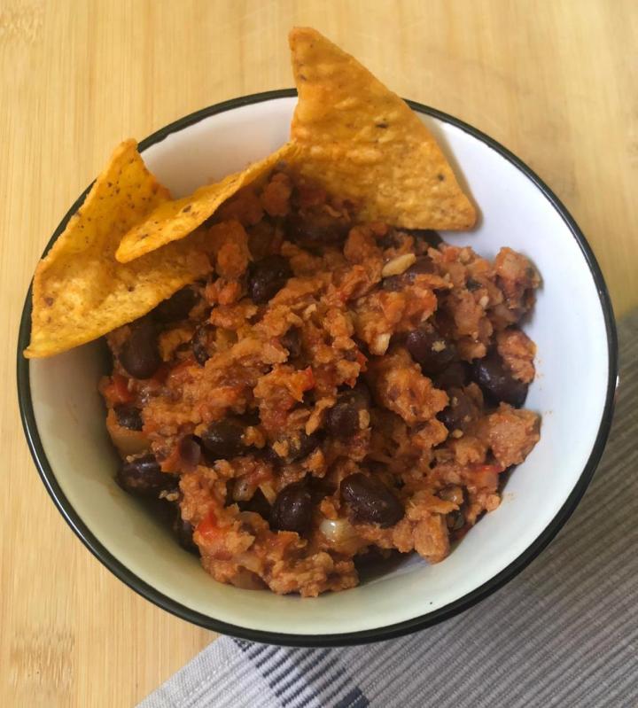 Hacía ya mucho tiempo que no compartía una receta versionada de soja texturizada. Me acordé de un plato que conocí en Escocia: Chili con carne. La verdad es que siempre había pensado que era un plato mexicano, pero hace poco descubrí que es una fusión de comida mexicana y americana, principalmente de Texas, lo que se conoce como tex-mex (nunca te acostarás sin saber algo nuevo).