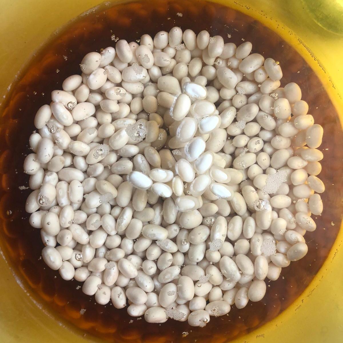 Lo primero que hay que hacer es dejar las alubias en remojo durante al menos 8 horas (yo las dejo toda la noche), en un recipiente con agua y sal. Escurre el agua, aclara y pon las alubias a cocer en una cazuela o en la olla rápida (y la patata pelada y cortada en láminas gruesas si quieres añadirla). Cubre las alubias, agrega un poco de sal y cuece hasta que estén blanditas. Reserva con ese agua.