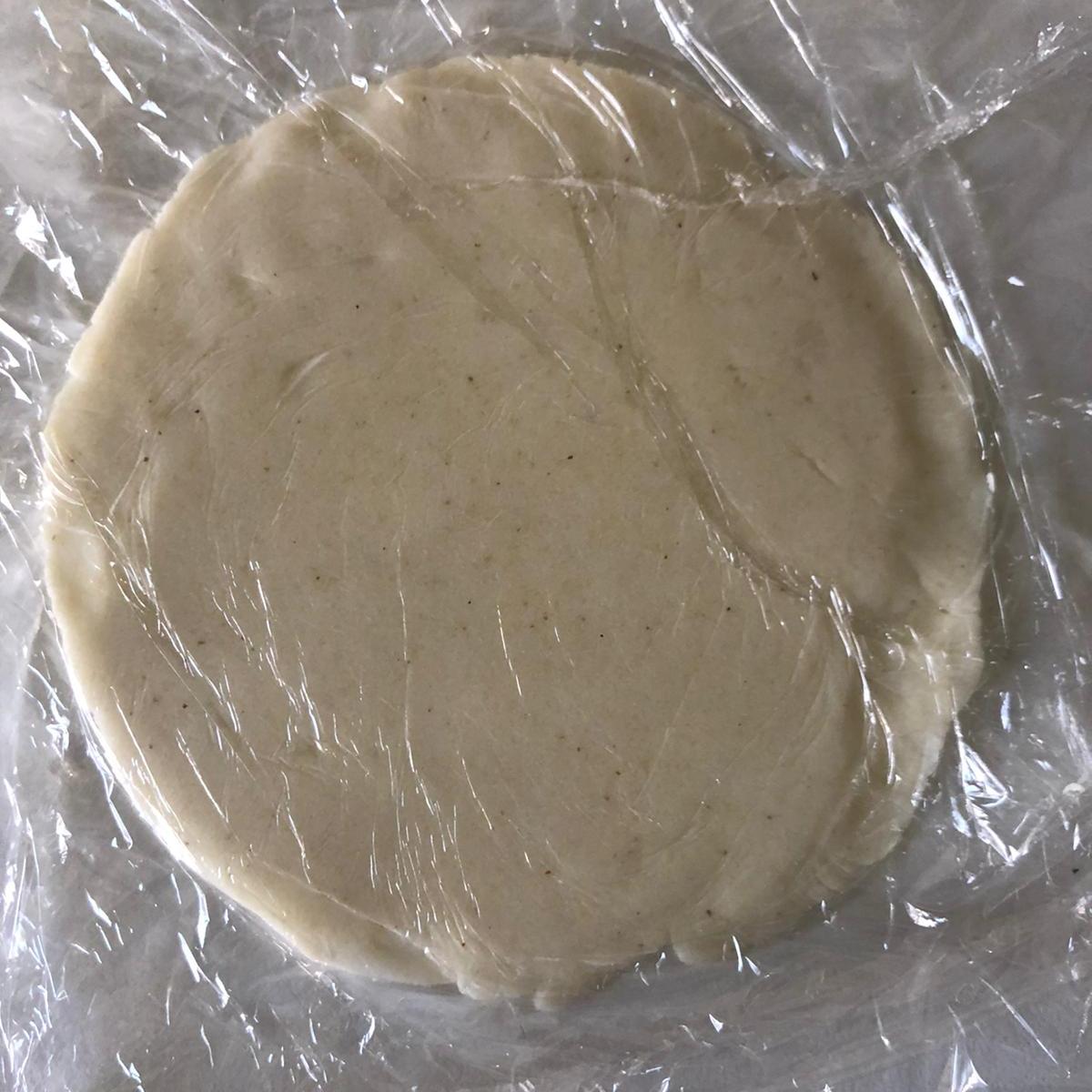 Divide la masa en porciones (del tamaño que desees) y colócala entre dos trozos de papel film o papel de horno. Aplástala con un plato o una cazuela, aunque te recomiendo que la estires con un rodillo para que quede más finita (de 1 mm). Puedes cortarla con un molde para dejarla perfecta.