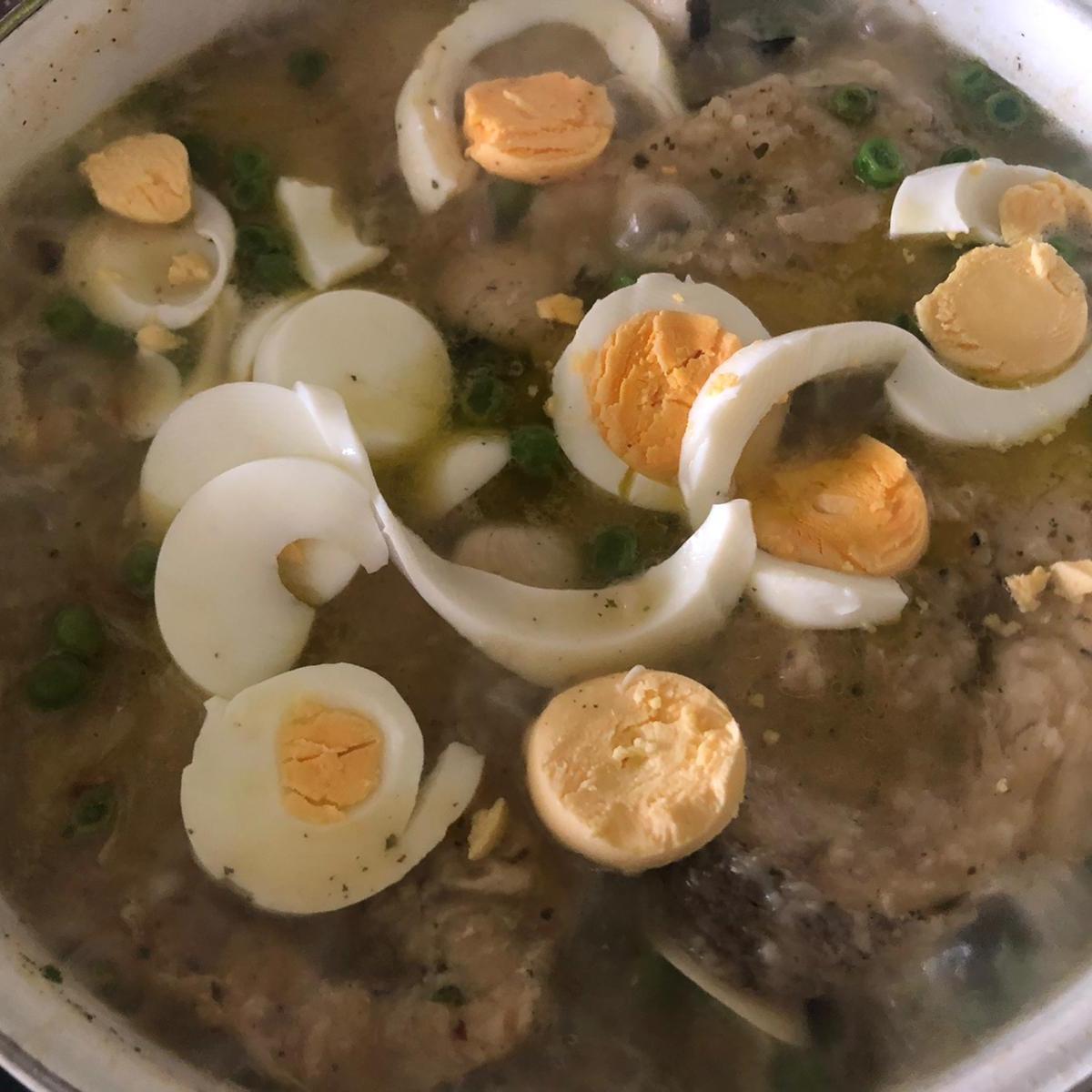 Pela los huevos, córtalos en rodajas y agrega a la cazuela. Dale un último hervor y listo para servir.