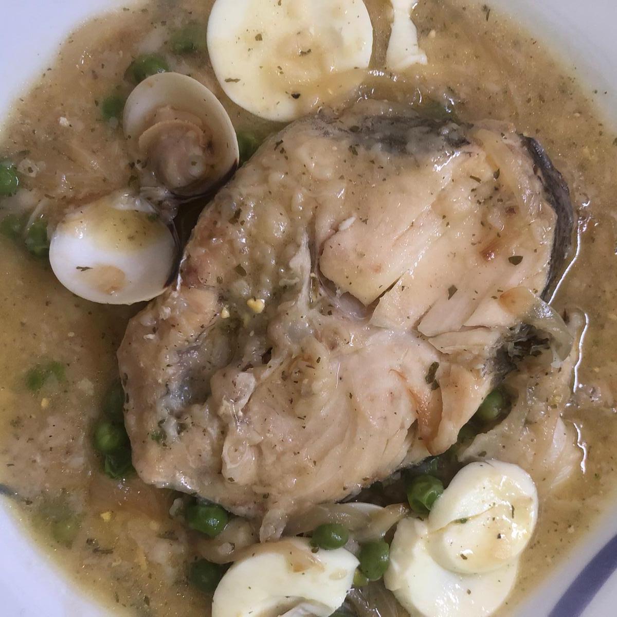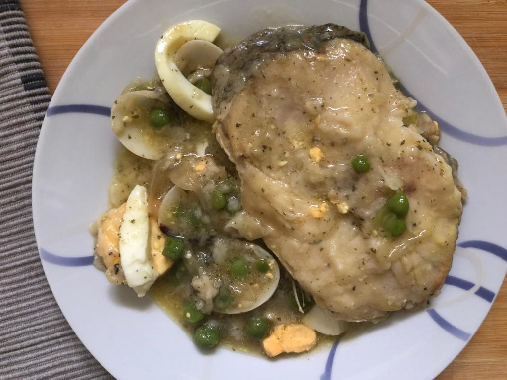 A veces la he comido sin huevo, otras sin guisantes, otras con gambitas. Lo básico para mí es la salsa de cebolla y el machado de ajo y perejil. El huevo le da un toque especial porque espesa la salsa, aunque también le puedes añadir una cucharadita de harina si prefieres prescindir de él.