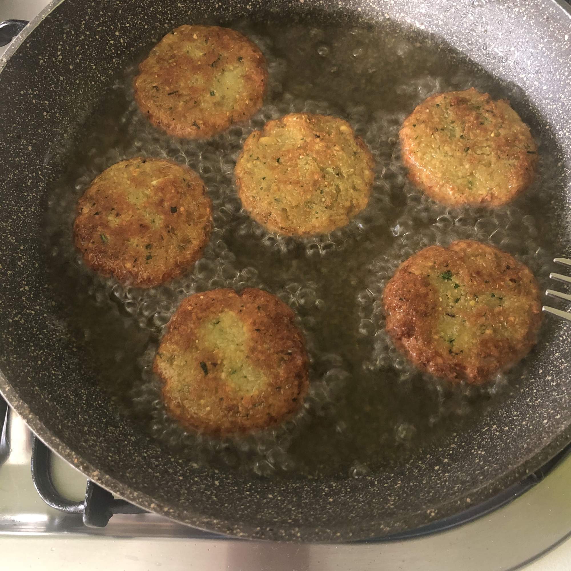 Hoy os traigo una receta típica árabe, falafel, que no es otra cosa que una especie de hamburguesita de garbanzos crudos (sí, crudos), mezclados con hortalizas y especias. Puedes comerlo con pan árabe en plan «bocata», con una salsita de yogur, o bien como plato combinado con un poco de ensalada, unas hojas de parra rellenas de carne, aceitunas y hummus. Está buenísimo de cualquier forma.