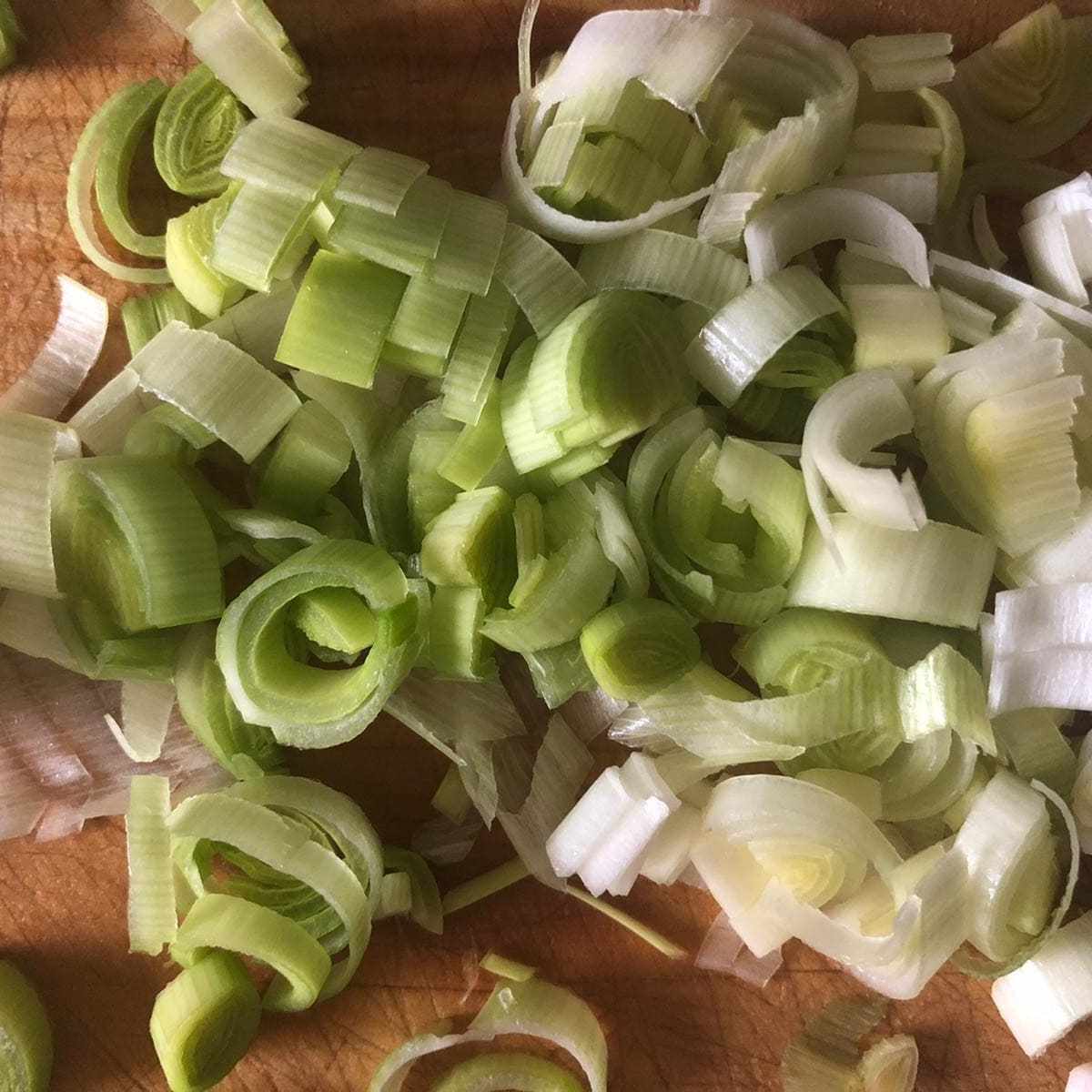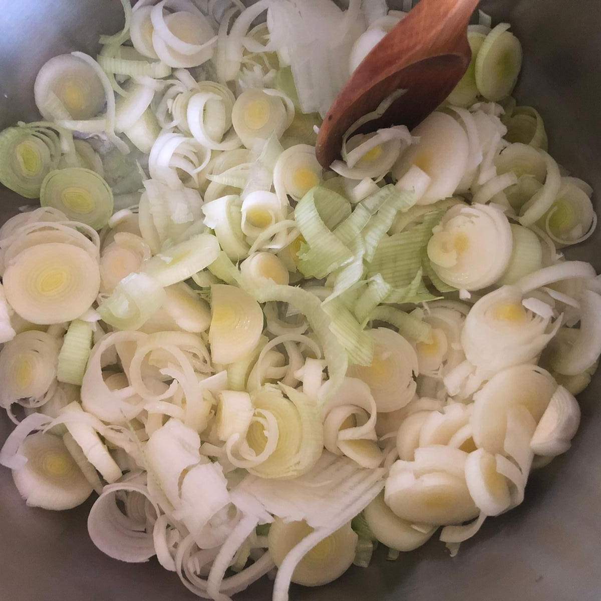 En la receta original se utiliza sólo la parte blanca del puerro. Yo he aprovechado todo.