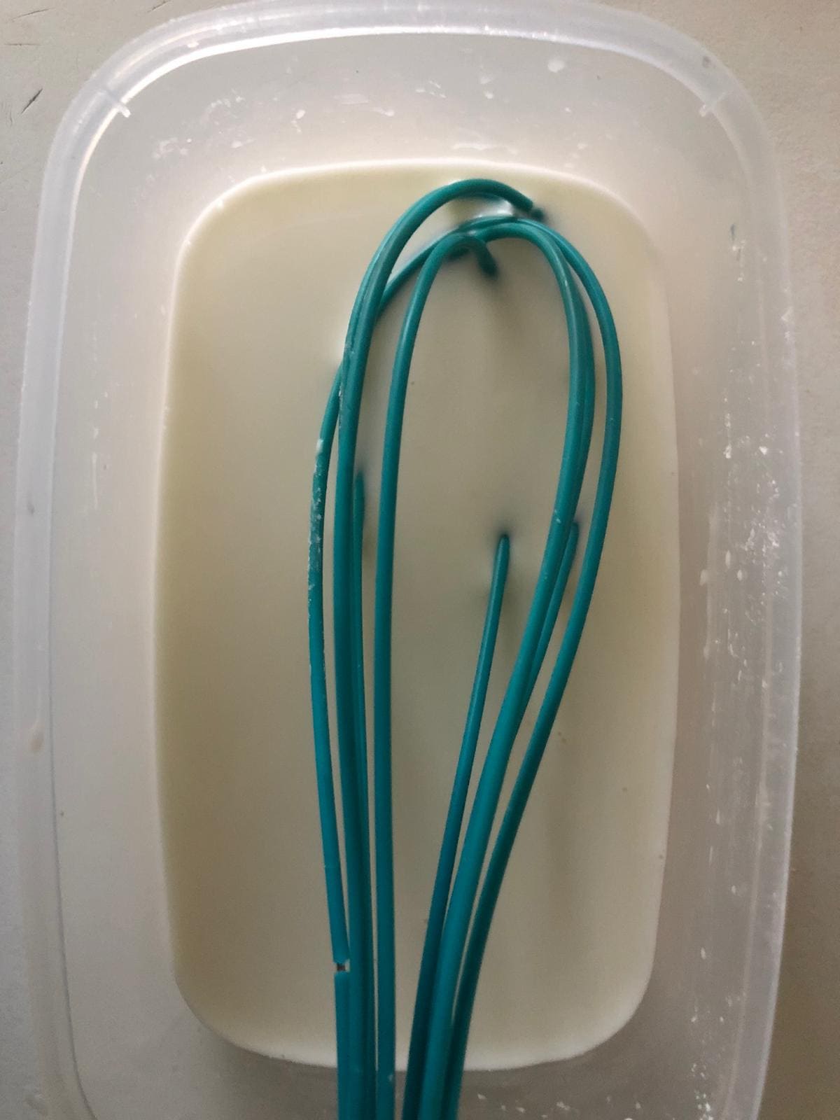 Vierte la maicena en un recipiente de tamaño mediano (te sirve un tupper) y añade parte de la leche. Mezcla hasta que la maicena se disuelva perfectamente.