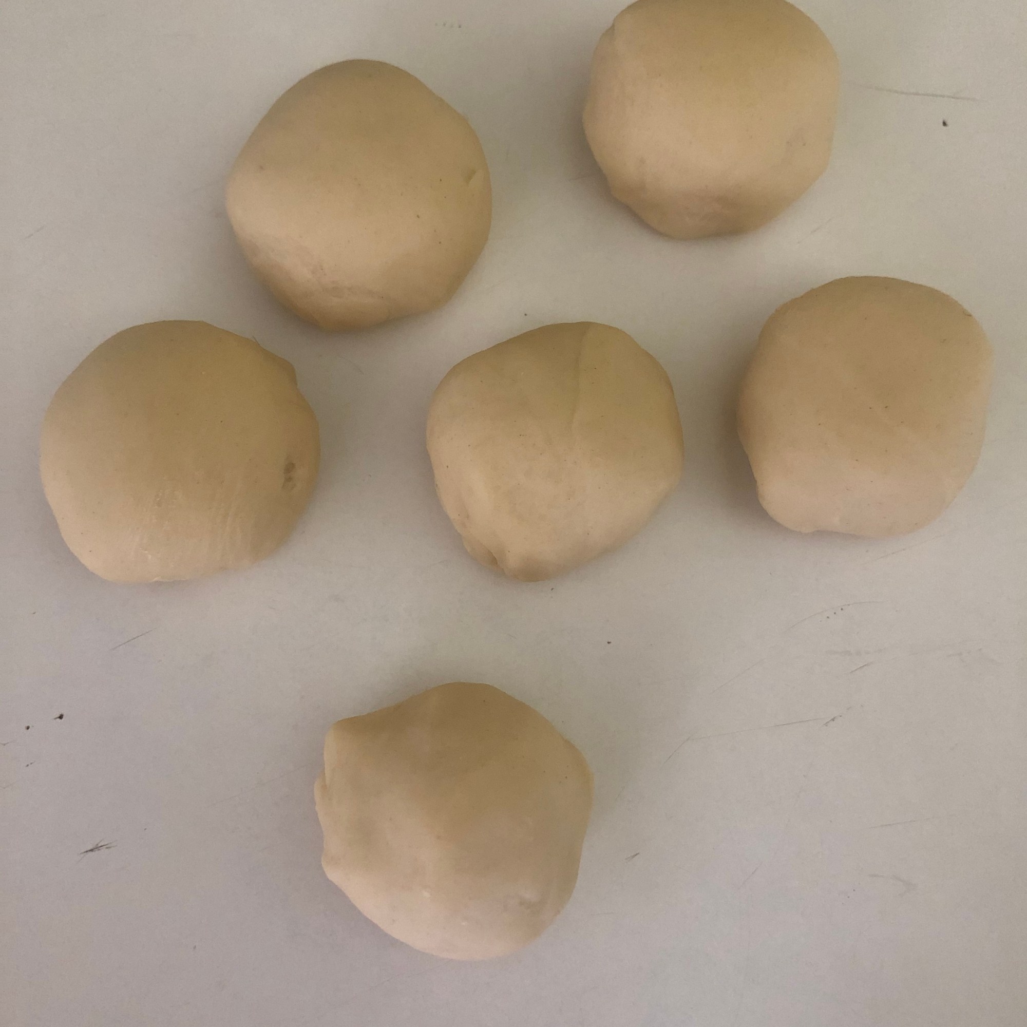 En este tiempo ya ha reposado la masa. Estírala como si fuera un churro grande y divídela en porciones iguales. Haz una bolita con cada una de ellas.