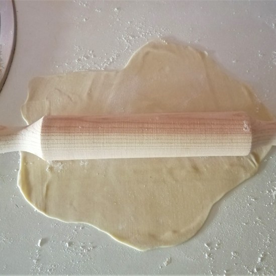 Forma 2: si el circulito no te funciona, estira la masa hasta conseguir un rectángulo de unos 15 cm de ancho y córtala a la mitad a lo largo. Vamos a utilizar el método de las bolsas de plástico (no sé si lo conocéis, pero os dejo un link para que le echéis un vistazo 😉 )