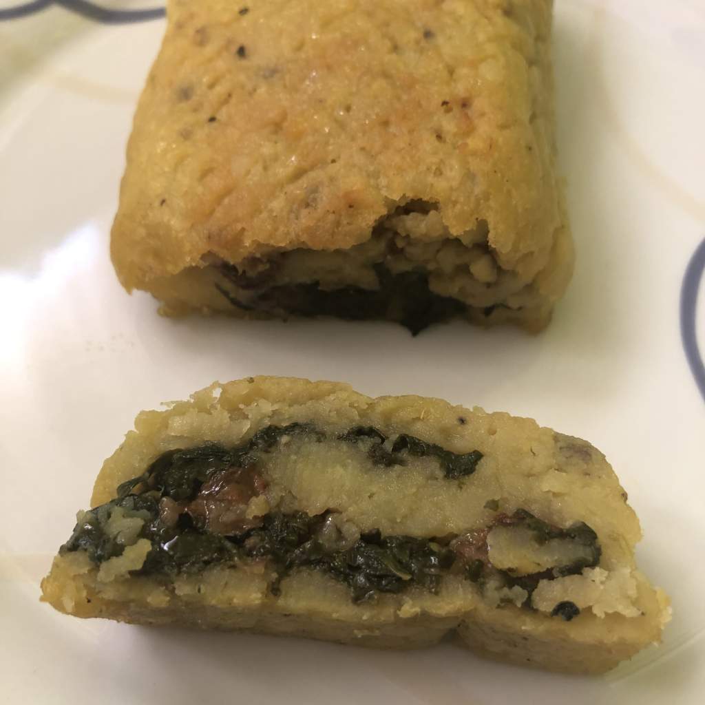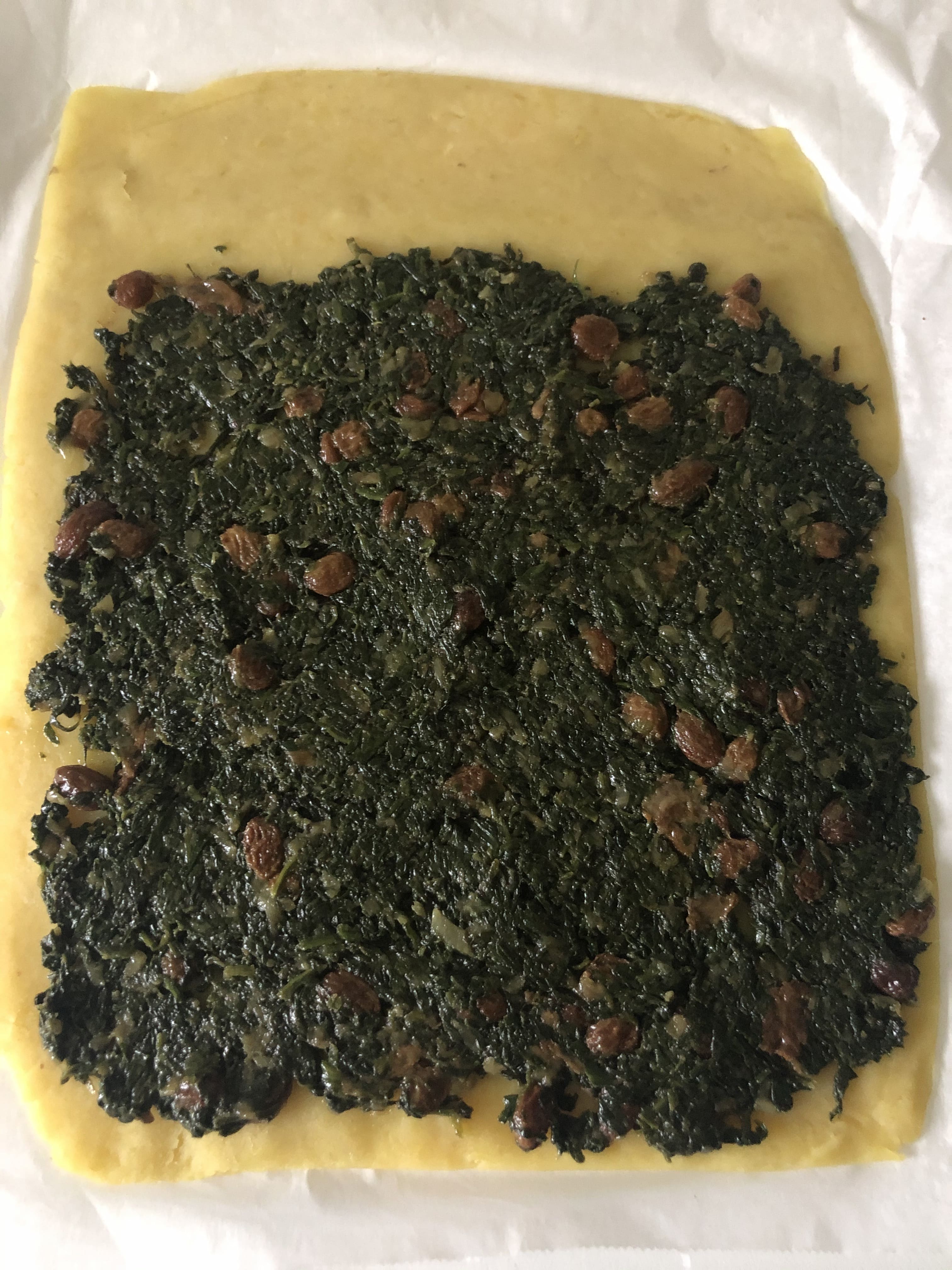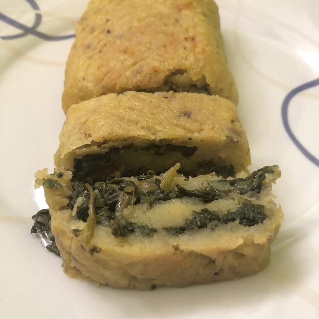 ROLLO DE PATATA, ESPINACAS Y PASAS