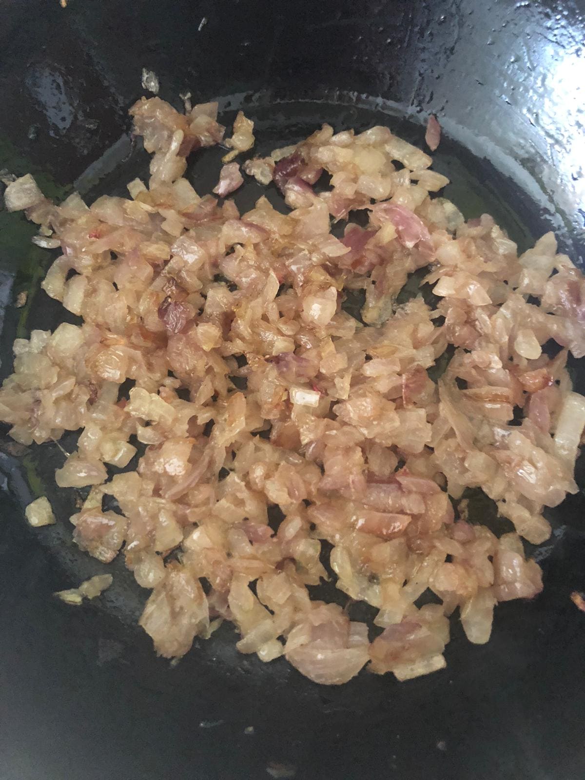 Corta la cebolla en brunoise. Vierte un poco de aceite en una sartén y pocha la cebolla a fuego lento.