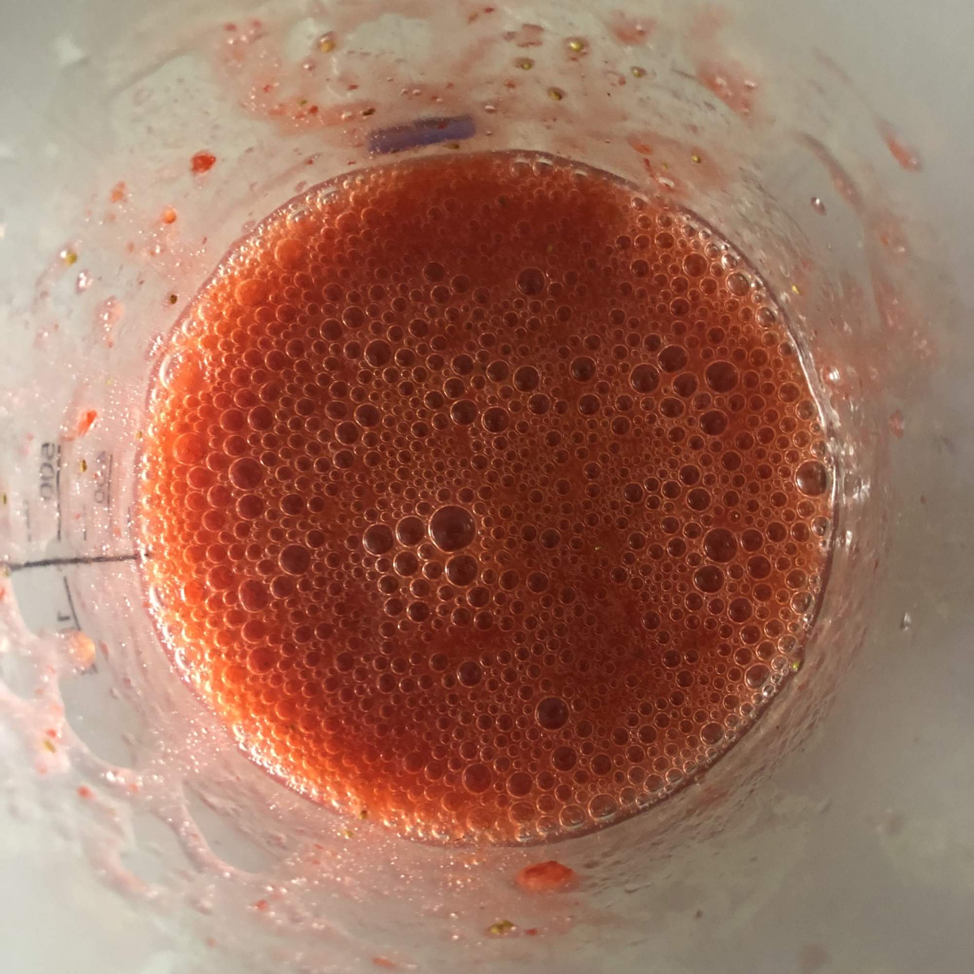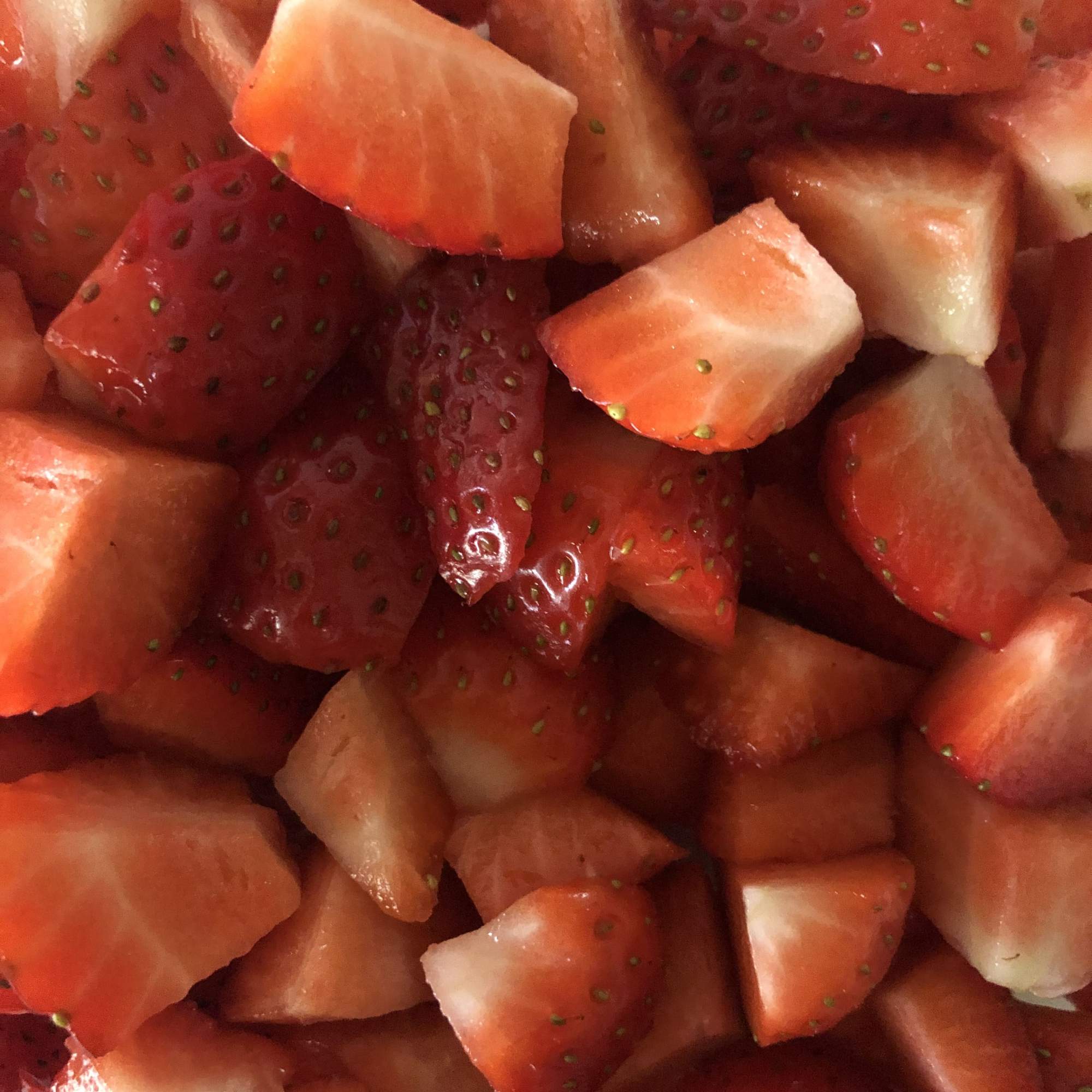 Mientras haces las cestitas, pon las hojas de gelatina a hidratar en un recipiente con agua fría durante unos 15 minutos. Por otra parte prepara el relleno. Lava bien las fresas, pícalas en trozos pequeños y ponlas en un recipiente. Añade el azúcar y déjalas macerar durante unos 15 minutos para que suelten su propio jugo. Una vez listas, tritura con la batidora hasta obtener una crema.