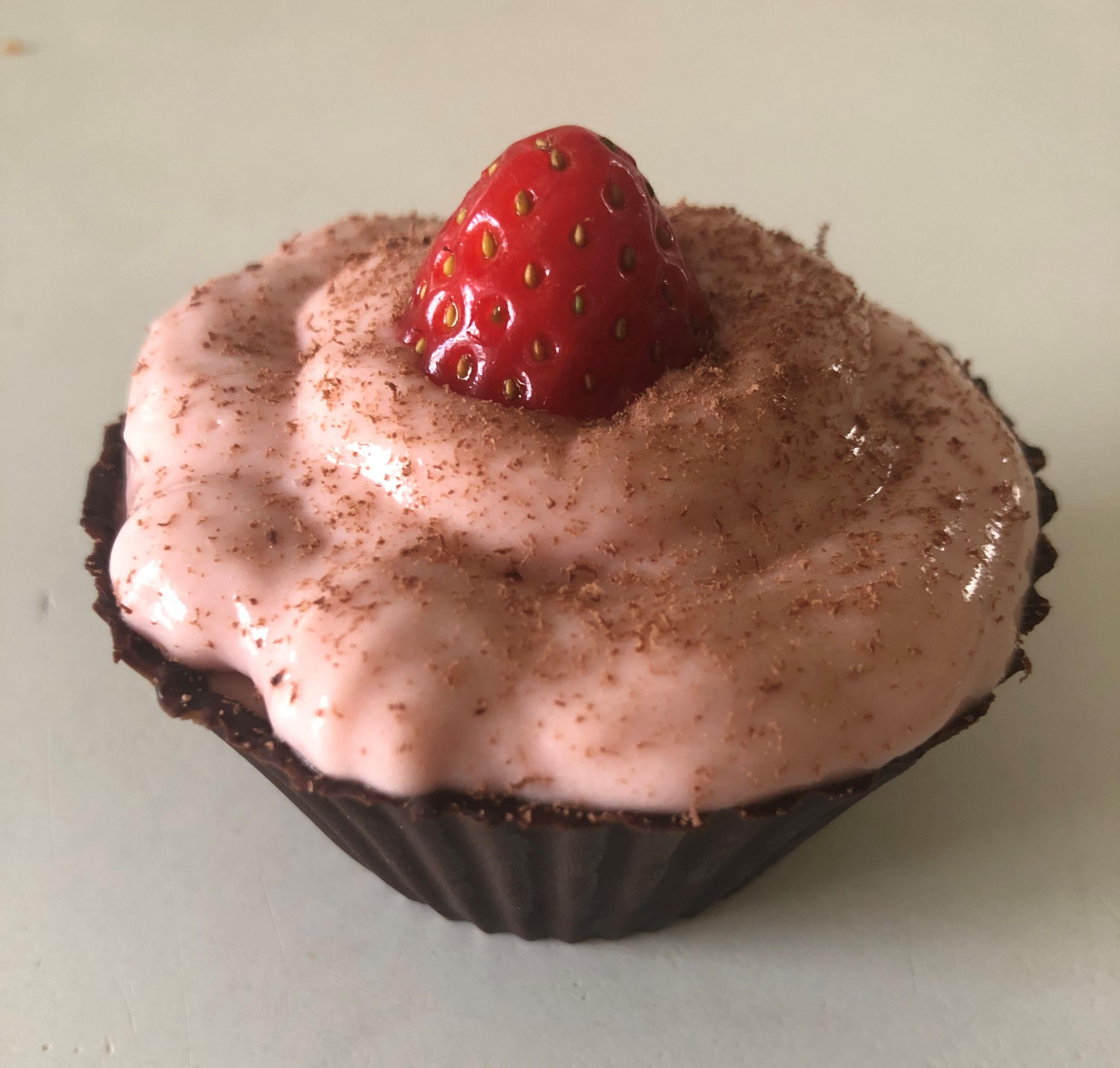 Tomando como referencia un postre que hace mi madre y, pensando en la manera de darle un toque diferente, se me ocurrió hacer unas cestitas de chocolate rellenas de crema de fresas y yogur. Y sí, están increíblemente buenas. No es una mousse, pero tiene una textura similar y el simple hecho de poder comerte el «vaso», lo hace aún más apetecible. ¿Qué opinas?