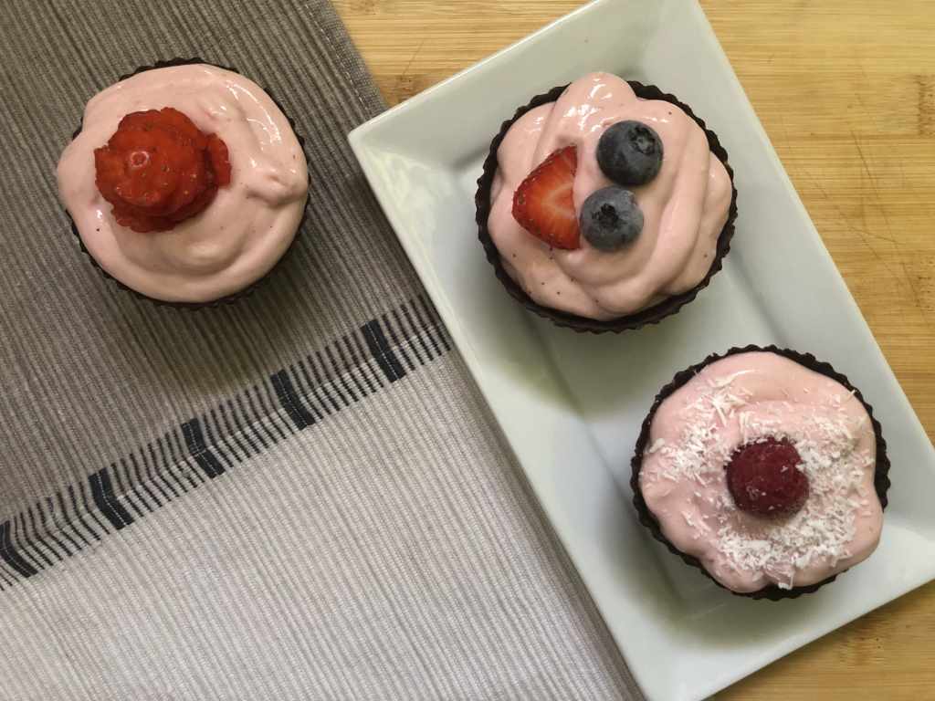 CESTITAS DE CHOCOLATE CON CREMA DE FRESAS Y YOGUR