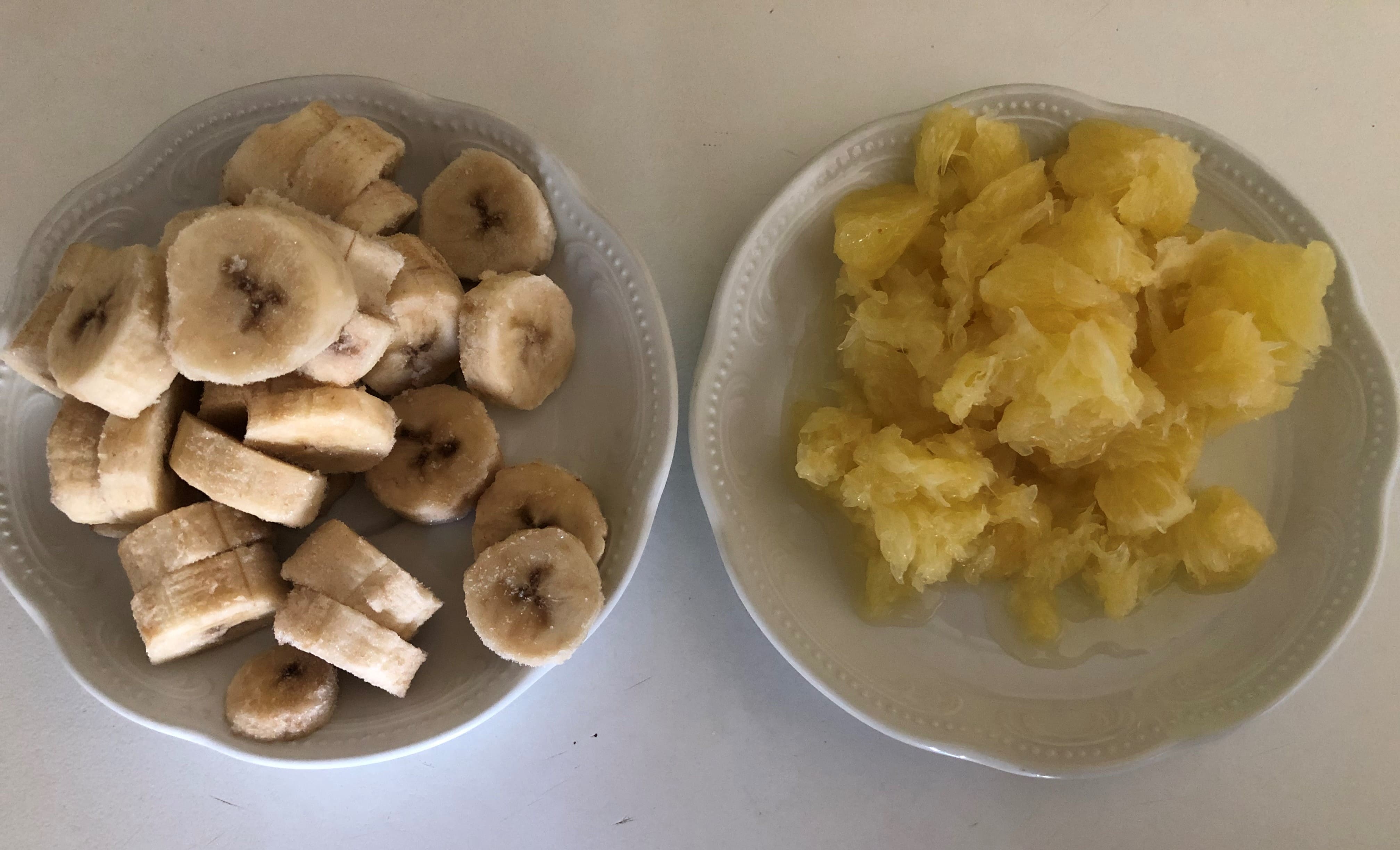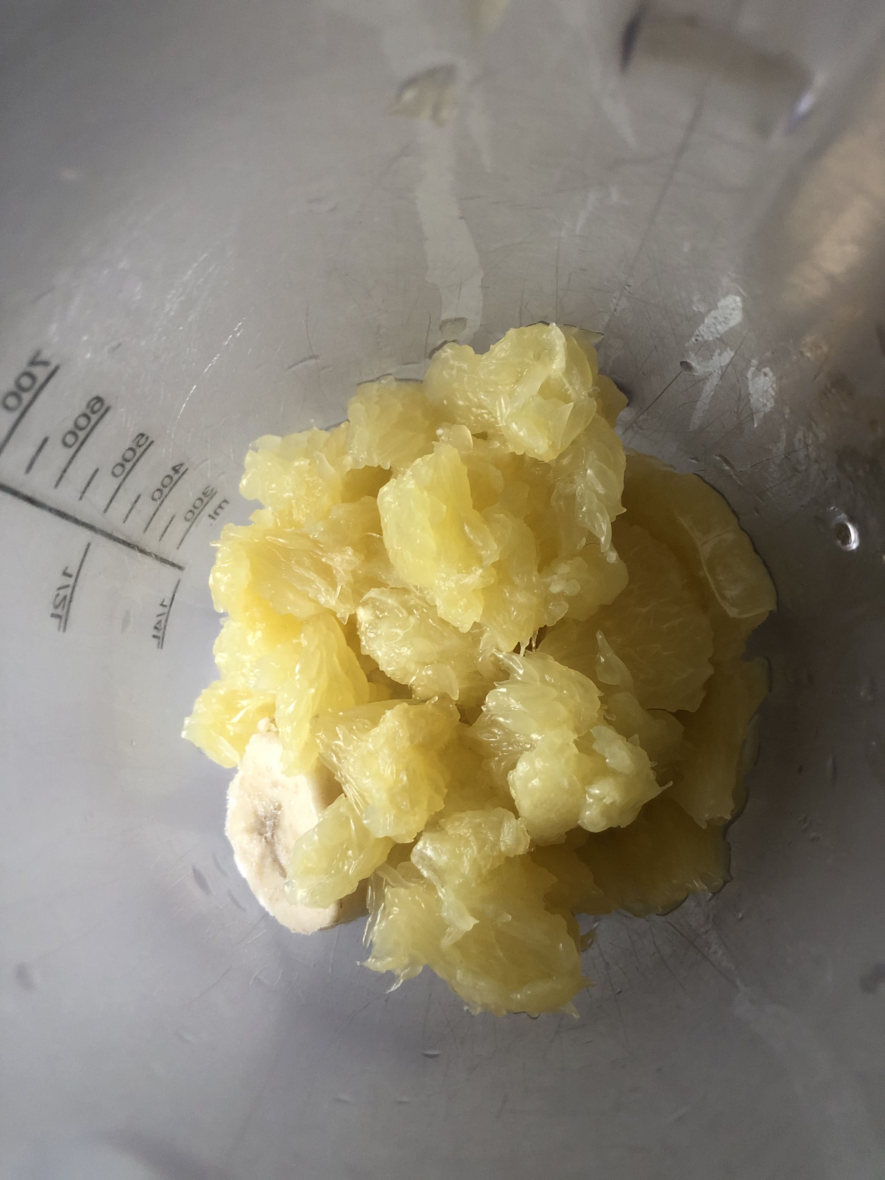 La cantidad propuesta en la receta no es exacta, ya que va a depender del tamaño del plátano y de la cantidad de zumo que tenga el pomelo. Lo ideal es que vayas añadiendo poco a poco la fruta para conseguir la textura cremosa característica del helado.