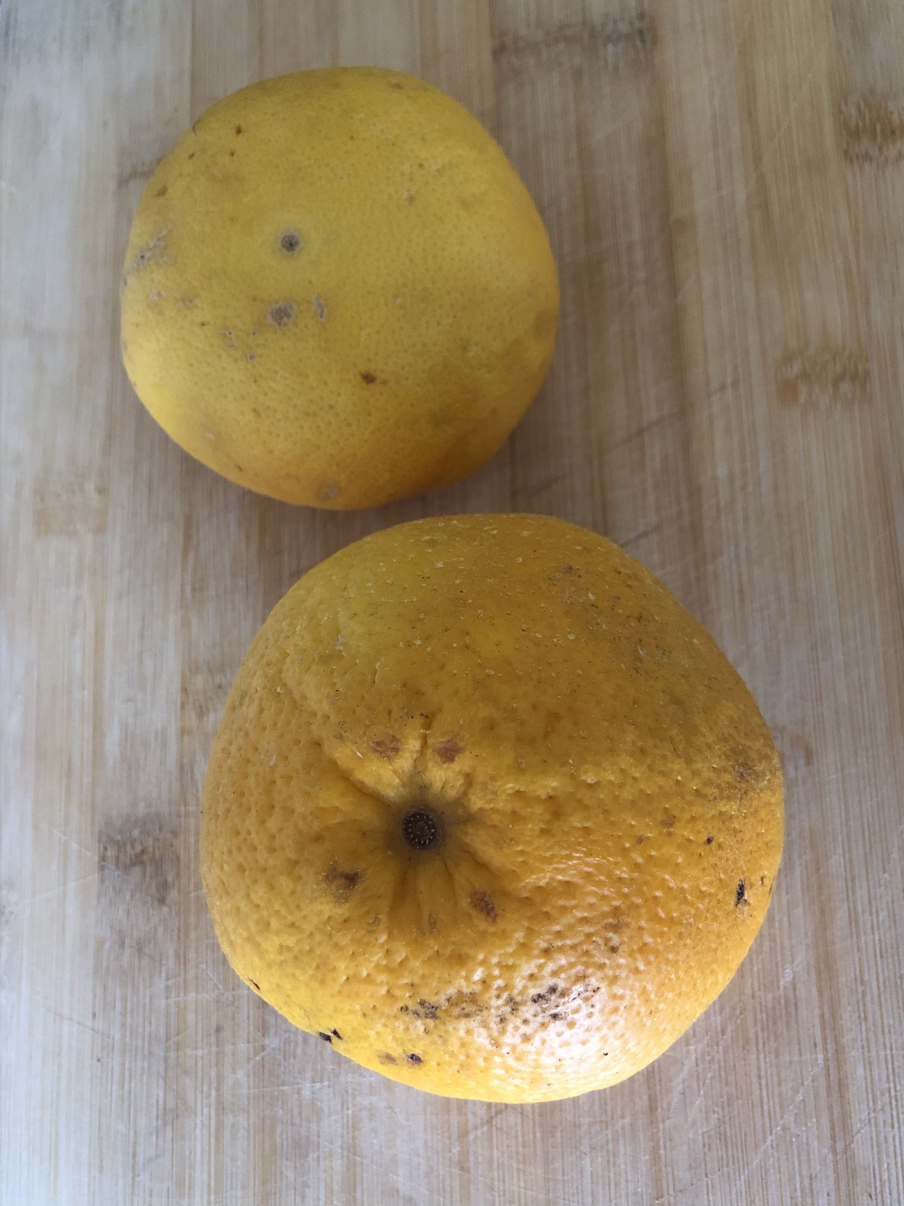 El pomelo utilizado no es la variedad común, sino que es amarillo. Además, tiene la cáscara más gruesa que la otra variedad y está más amargo de sabor, si cabe. Por si estos imprevistos no fueran suficientes, tuve que hacer una selección del fruto, ya que debido a la temporada tan avanzada, algunos de ellos estaban bastante secos.