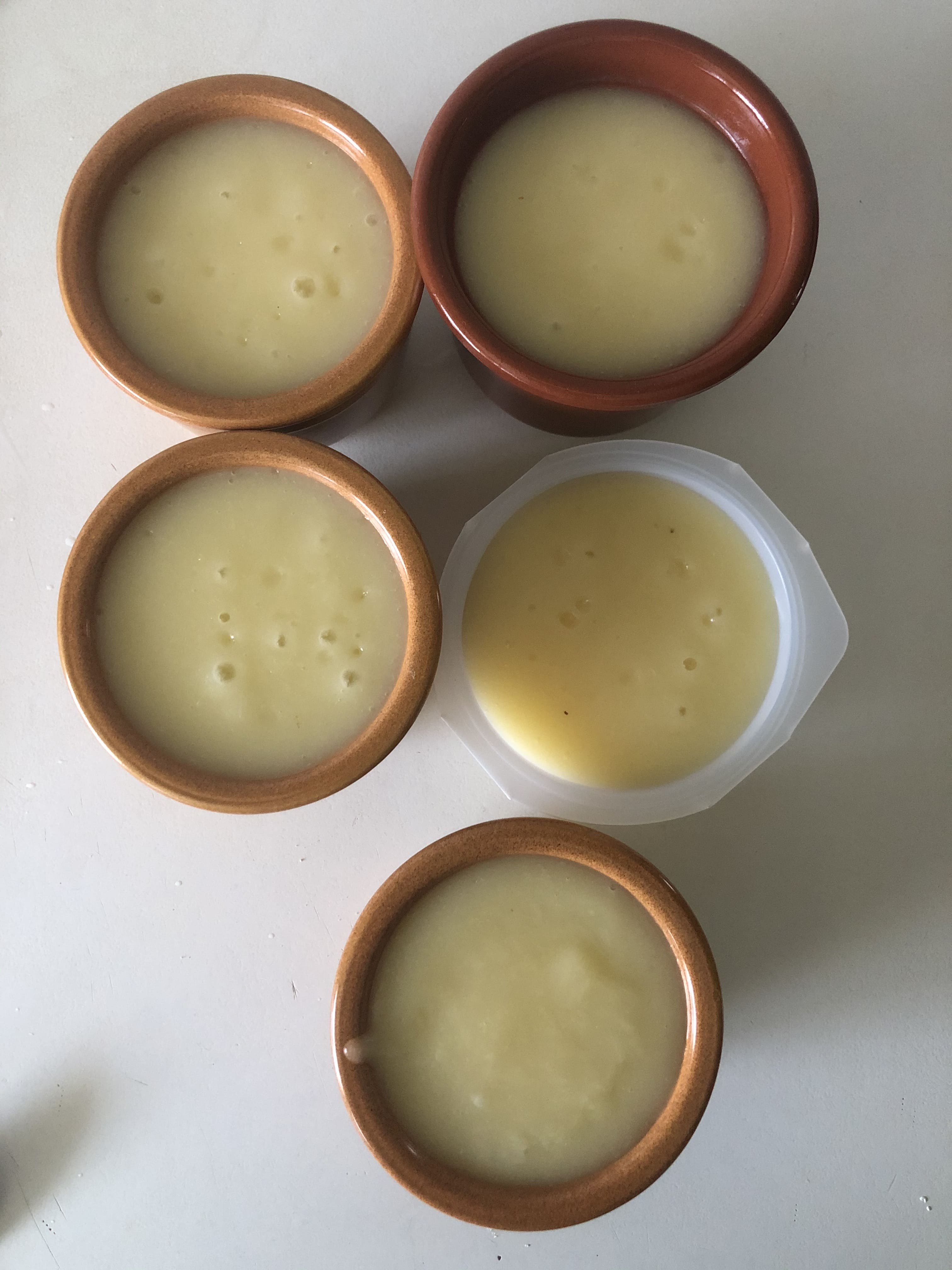 Pon el resto de la leche a calentar en un cazo y añádele la maicena. Remueve con unas varillas con cierta frecuencia. Antes de que empiece a espesar, añade el puré de piña y remueve constantemente hasta que empiece a espesar (para que no se pegue). Cuando notes la crema más consistente, cocina un par de minutos y retira del fuego. Sirve en moldes individuales y deja enfriar. Después, lleva al frigo durante al menos seis horas (yo prefiero dejarlas toda la noche), para que termine de cuajar perfectamente.