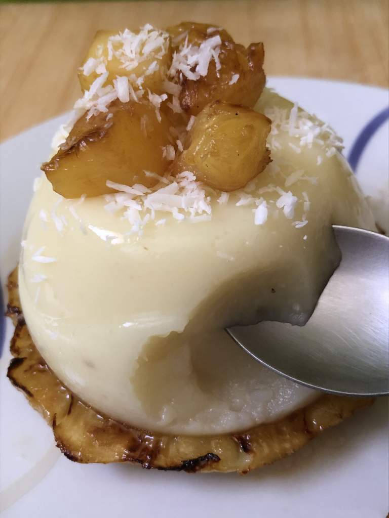 Podéis añadir un poco de coco rallado a la crema de piña y leche. Yo, personalmente, prefiero dejarlo tal cual porque la textura es mucho más suave.