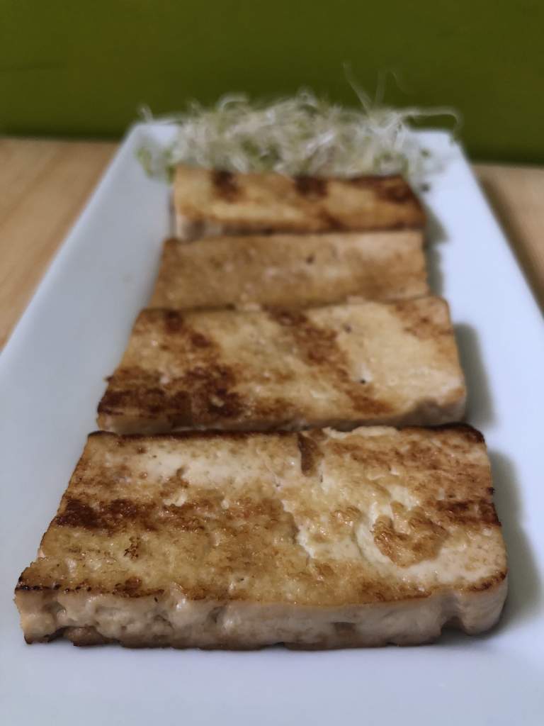 Como punto de partida he elegido una de las recetas más fáciles que vas a encontrar: tofu marinado. En la red existen infinidad de ideas para marinar vuestro tofu, pero yo me he decantado por una opción agridulce, que me encanta. Sólo tenéis que dejarlo macerar durante unas horas y asar. Listo. Mira el resultado: