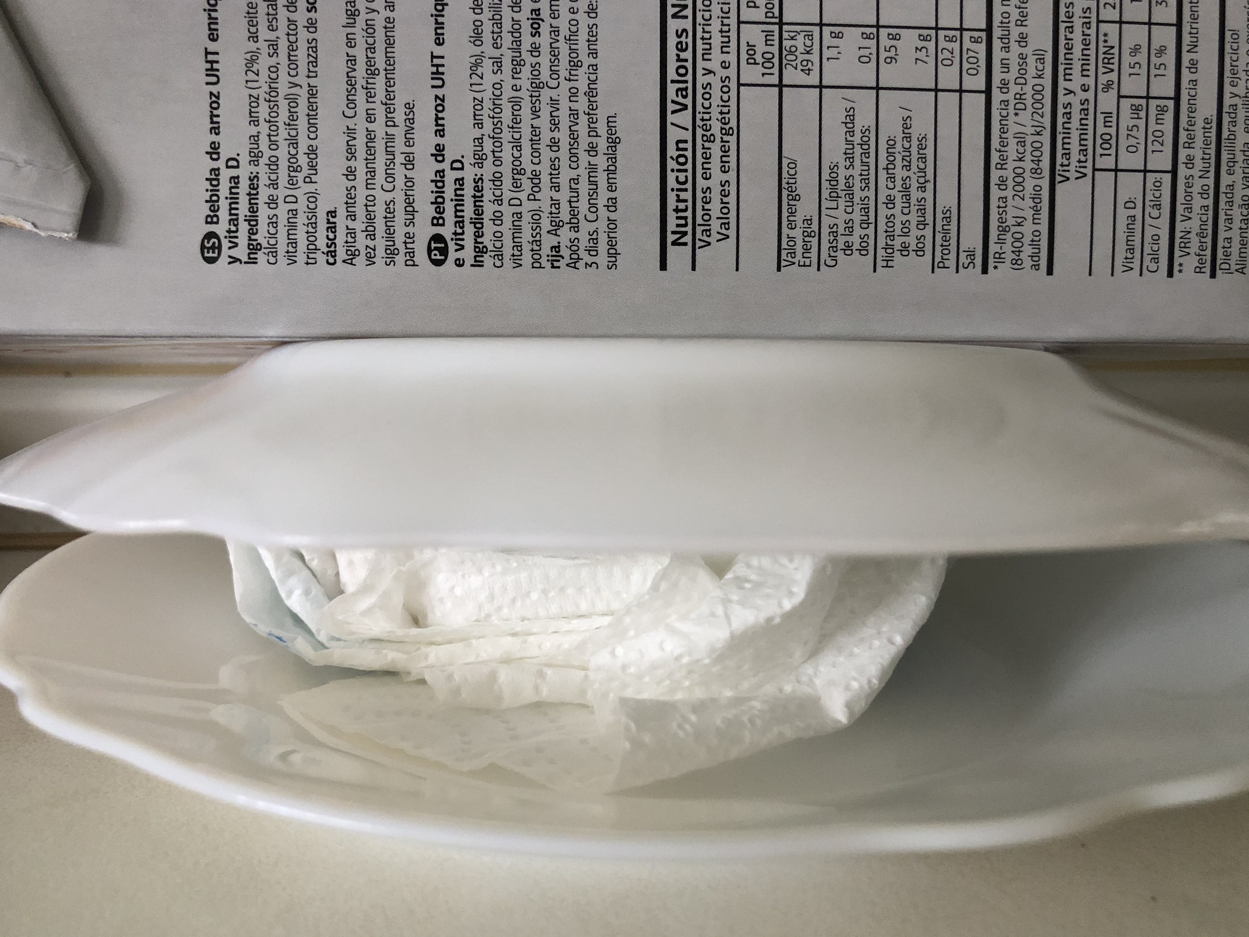 Drena el tofu. Envuélvelo en una servilleta de papel y colócalo sobre un plato. Encima, coloca otro plato y algo de peso (yo he utilizado un litro de leche porque es tofu firme y no se desmorona). Deja que elimine el agua durante unos 20 minutos, cambiando la servilleta.