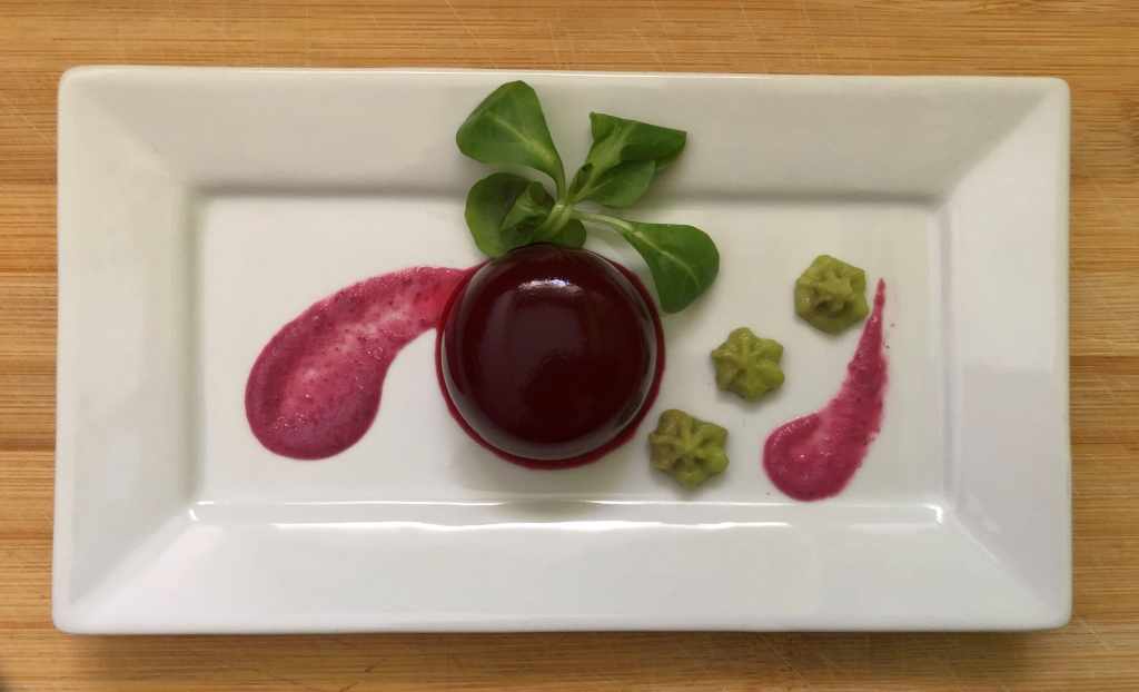 GELATINA DE REMOLACHA Y MANZANA CON YOGUR Y AGUACATE