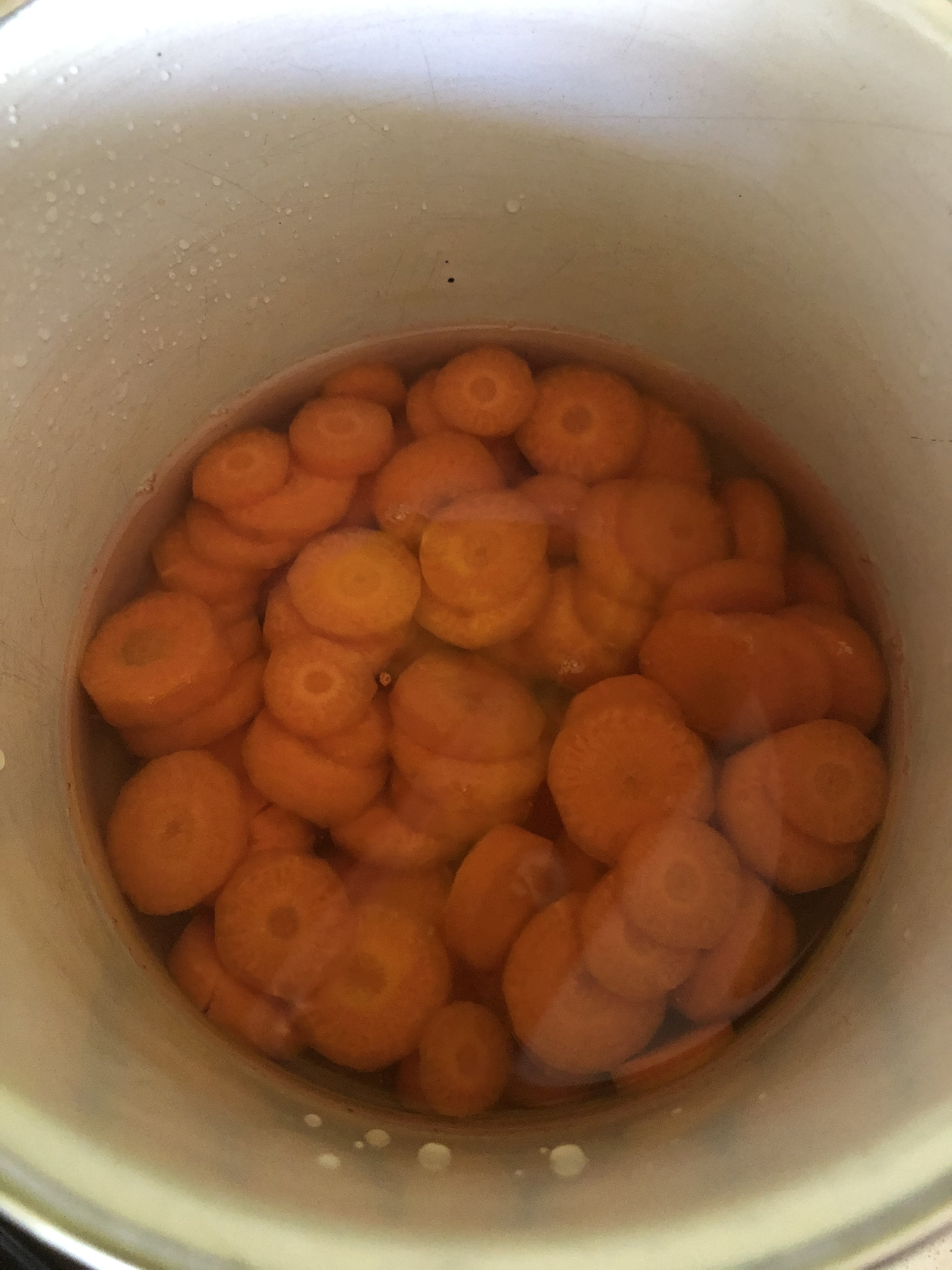 Hidrata los dátiles durante unos 15 minutos en agua caliente. Si están blanditos no es necesario. Pela las zanahorias, corta en rodajas finas y ponla a cocer en una cazuela con agua hasta que estén tiernas.