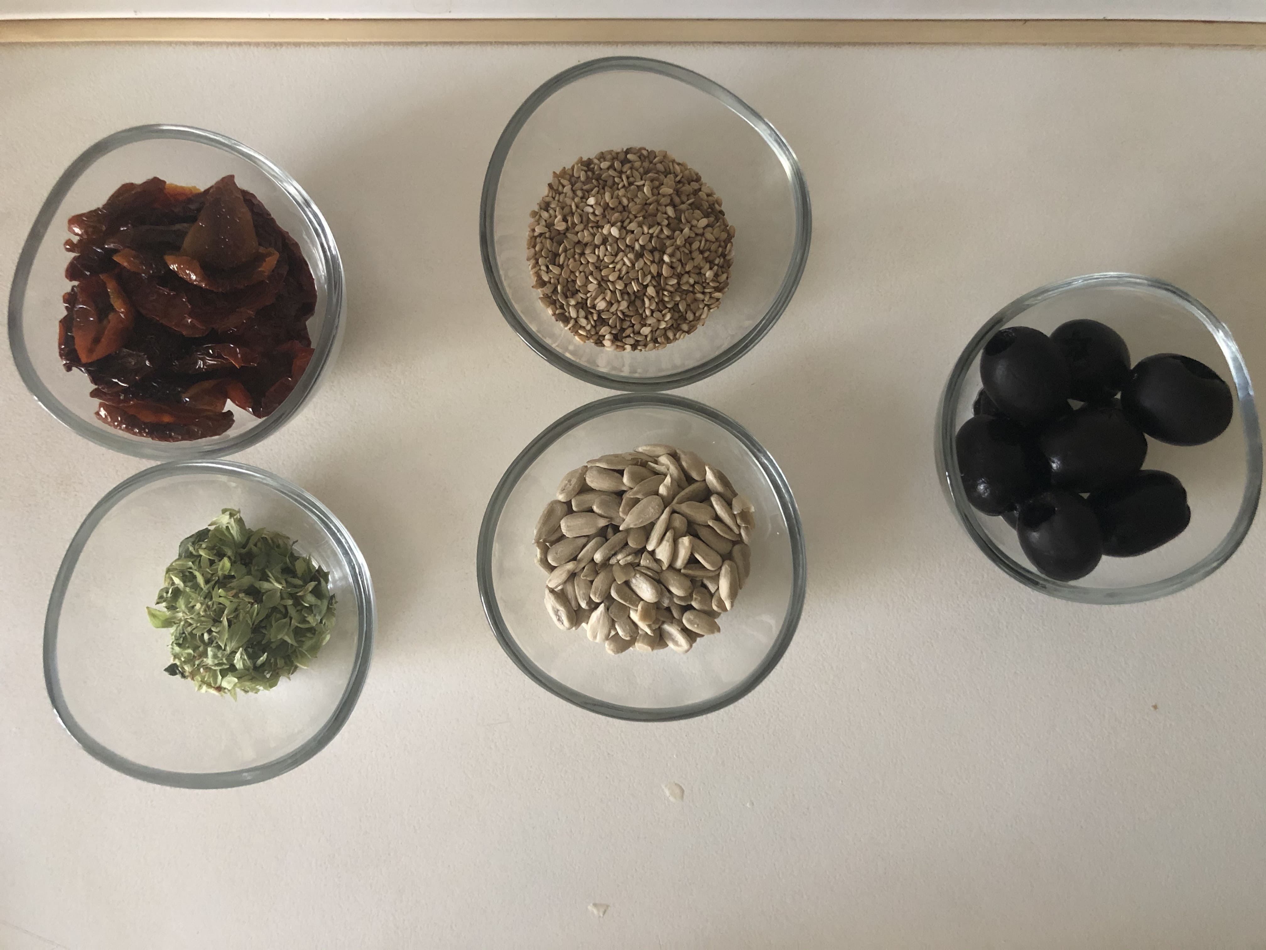 - 10 gr de pipas de girasol + 10 gr de semillas de sésamo tostado